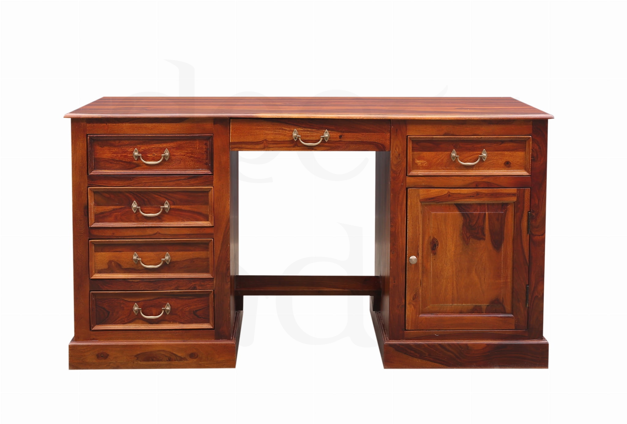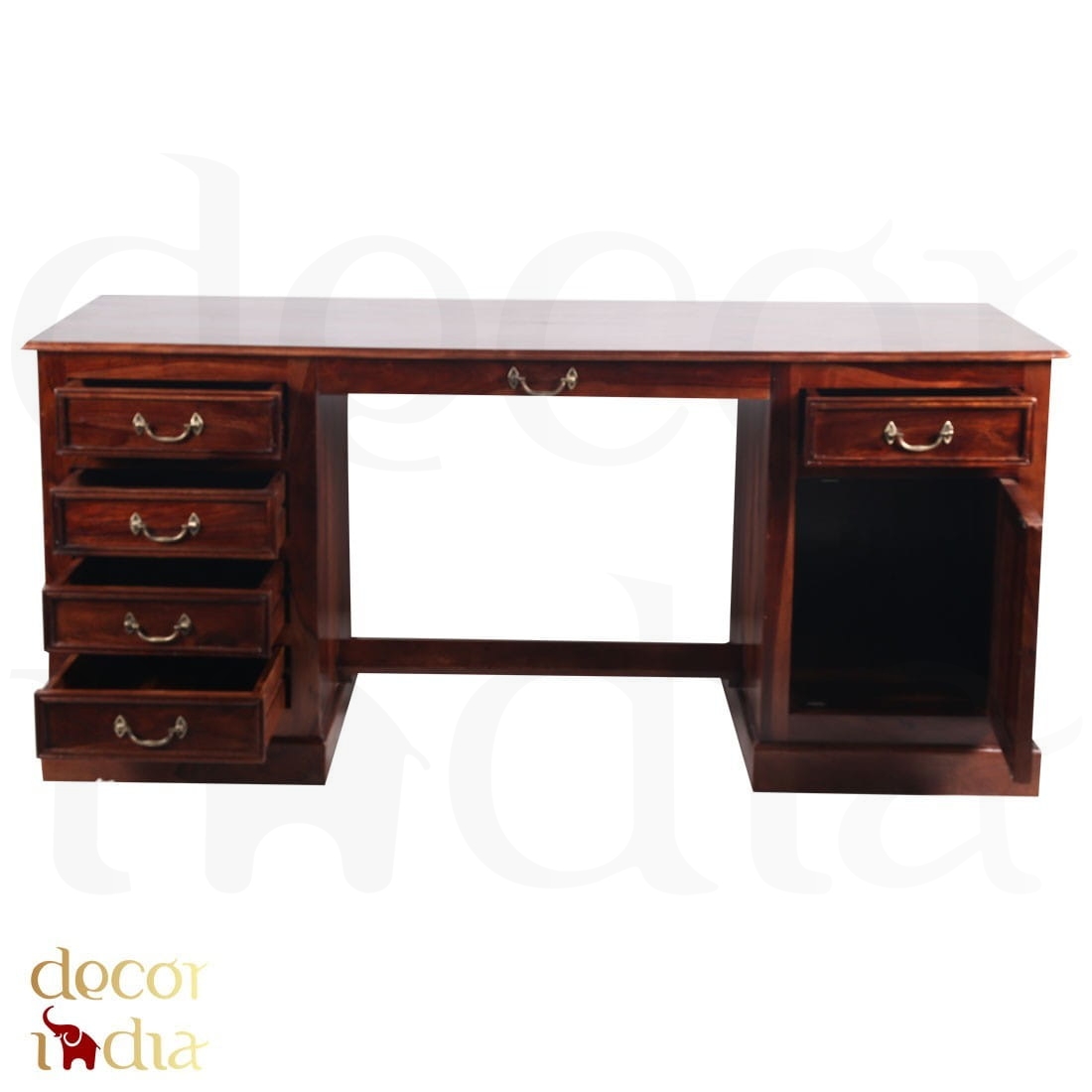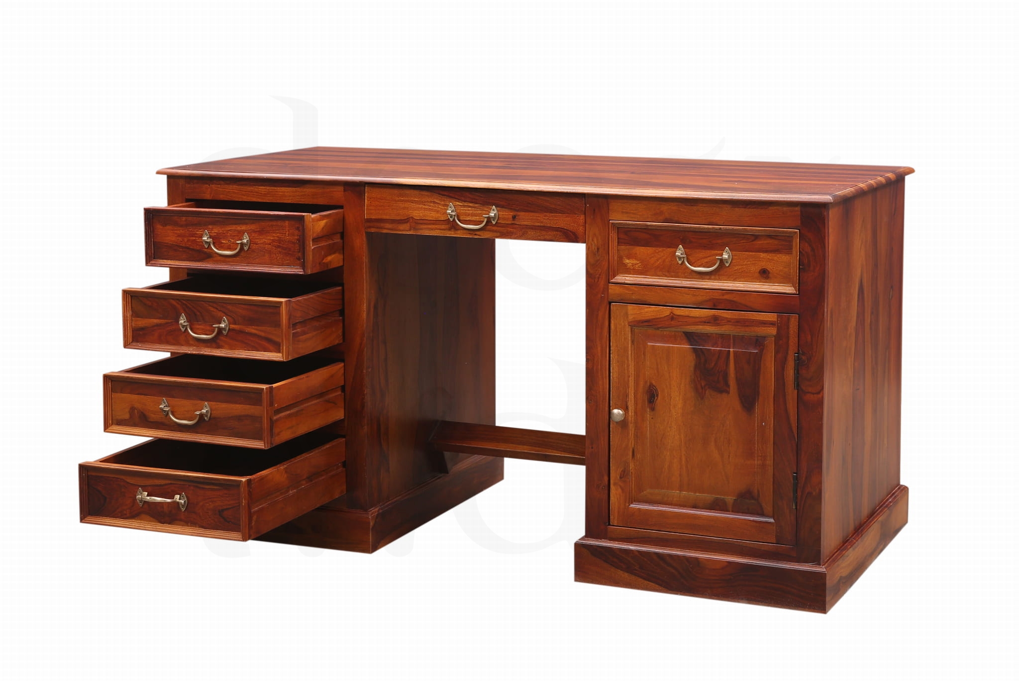 To eleganckie biurko zostało wykonane z wysokogatunkowego drewna palisandrowego, znanego z wyjątkowej trwałości oraz pięknego, głębokiego rysunku słojów. Precyzyjne, ręczne wykonanie podkreśla dbałość o każdy detal, łącząc funkcjonalność z klasycznym pięknem.
