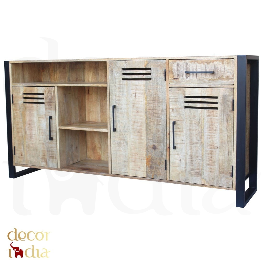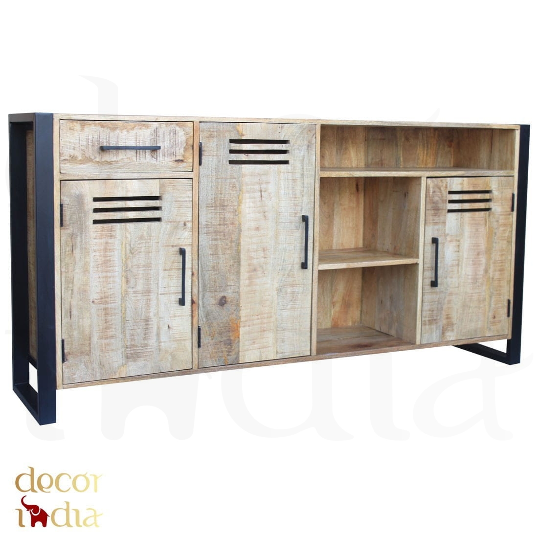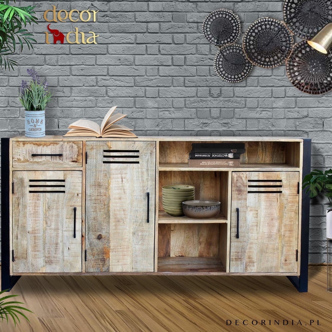 Duża indyjska drewniana komoda loftowa industrialna