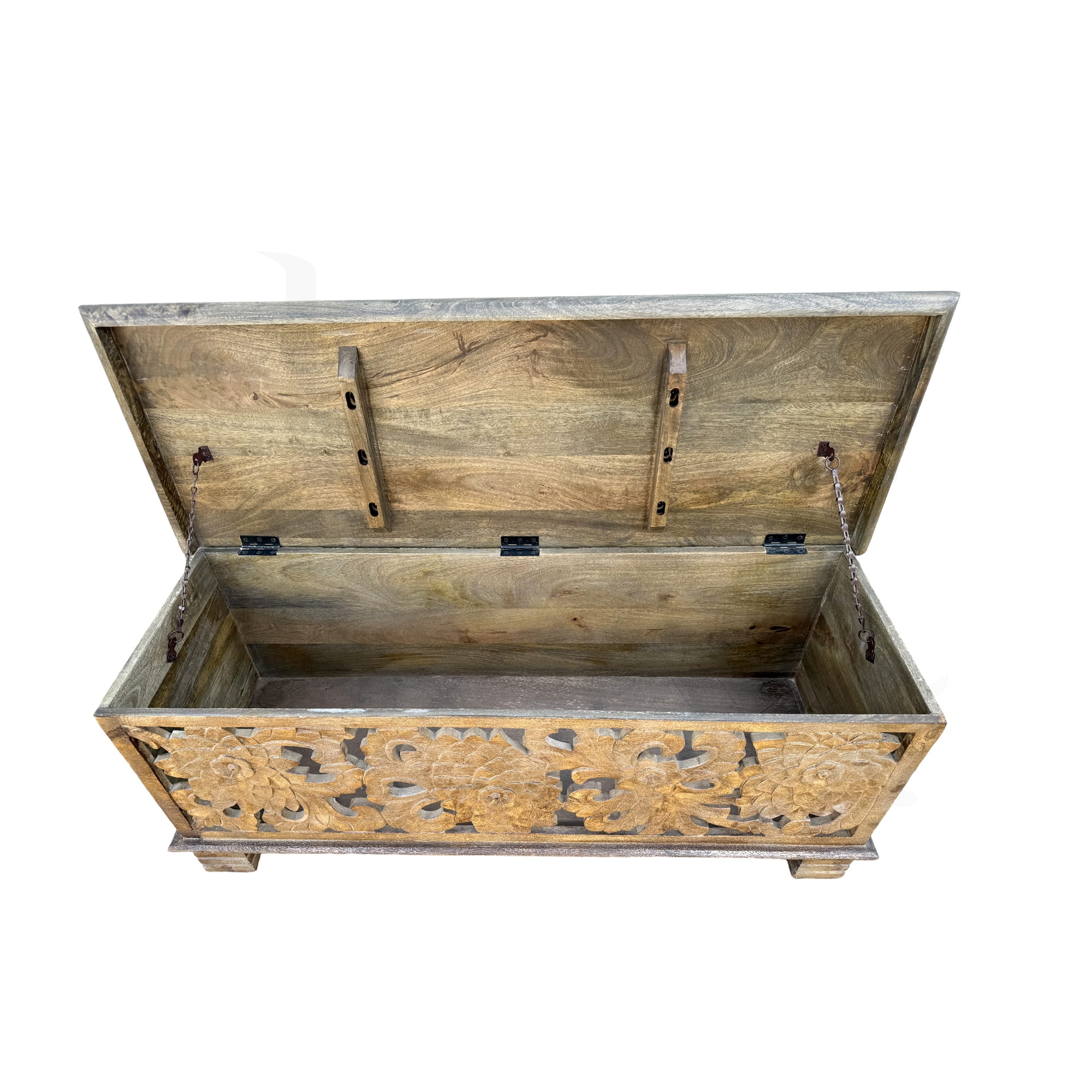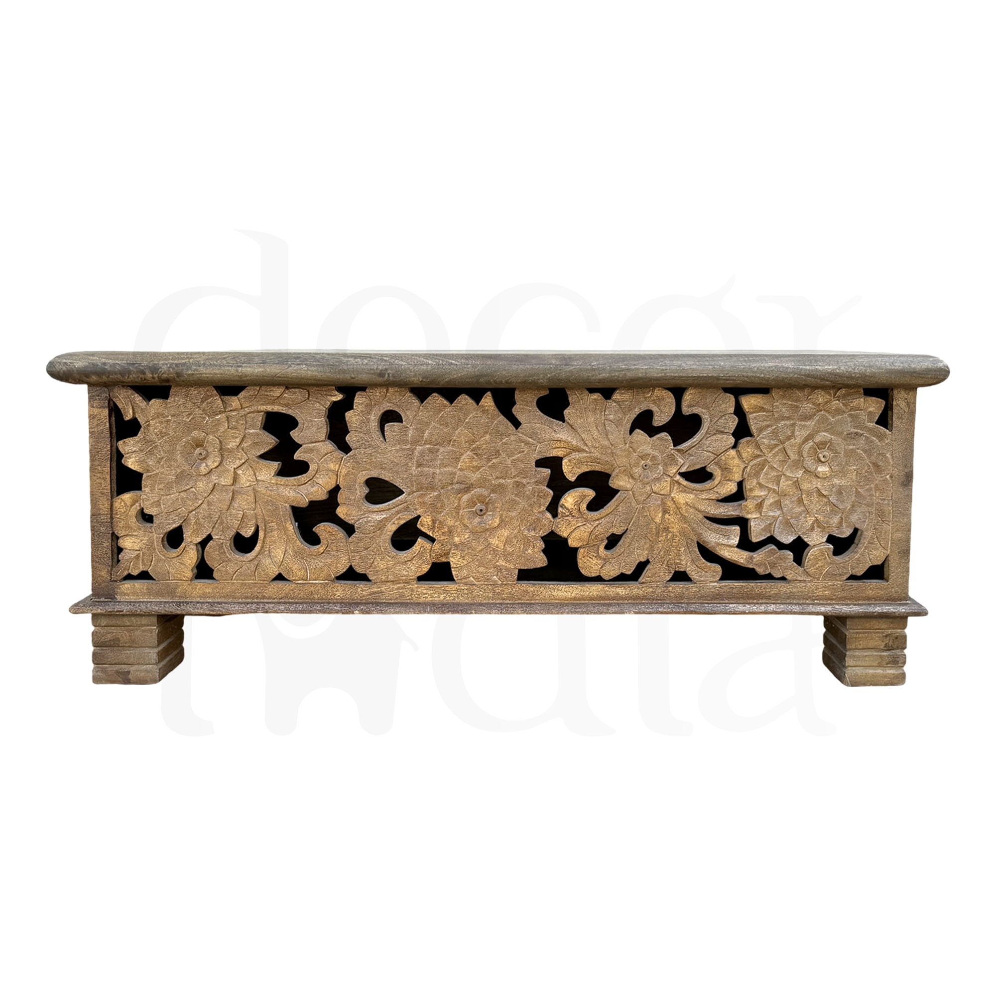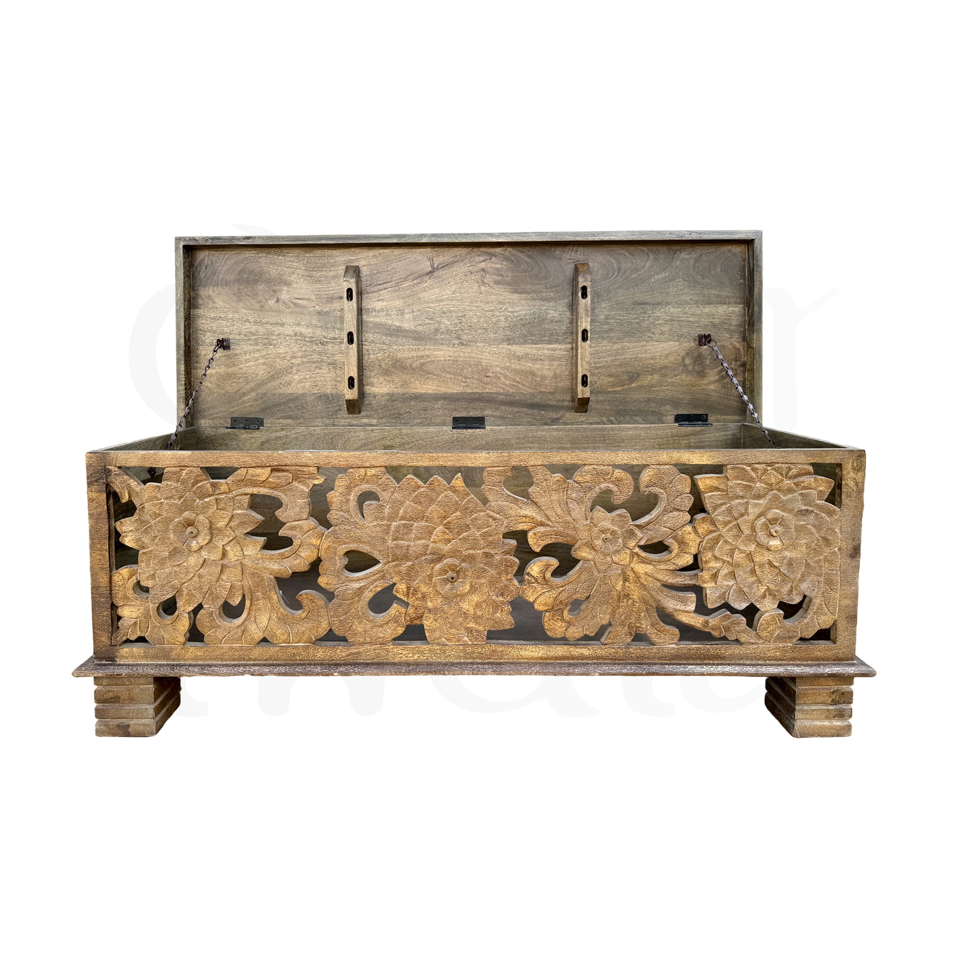 Indyjska drewniana rzeźbiona skrzynia, wykonana z litego drewna mango, to wyjątkowy element dekoracyjny i praktyczny mebel w jednym. Ta ręcznie wykonana skrzynia z misternymi kwiatowymi wzorami oddaje esencję tradycyjnego indyjskiego rzemiosła. Jej naturalny kolor drewna dodaje wnętrzu ciepła i przytulności, jednocześnie wprowadzając nutę egzotyki. Lite drewno mango, znane ze swojej trwałości i wytrzymałości, stanowi solidną podstawę tej skrzyni. Tradycyjny indyjski design doskonale komponuje się z różnorodnymi aranżacjami wnętrz, a skrzynia świetnie sprawdza się jako praktyczne miejsce do przechowywania różnych przedmiotów. Może pełnić funkcję ozdobną w salonie, sypialni czy przedpokoju. Naturalny odcień drewna mango dodaje ciepła i elegancji każdemu pomieszczeniu. Ta indyjska drewniana rzeźbiona skrzynia z litego drewna mango to nie tylko praktyczny mebel, ale również wyjątkowa ozdoba, która wprowadza do wnętrza odrobinę tradycyjnej indyjskiej sztuki i stylu.
