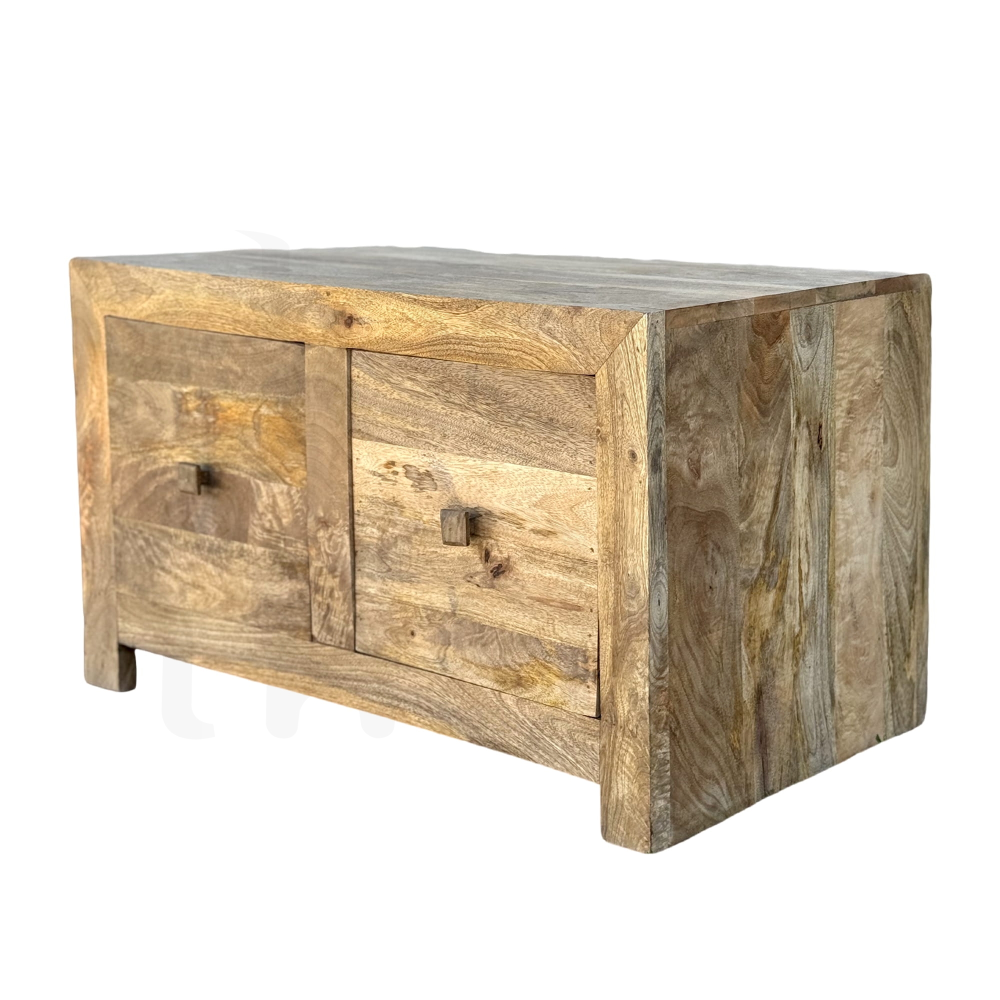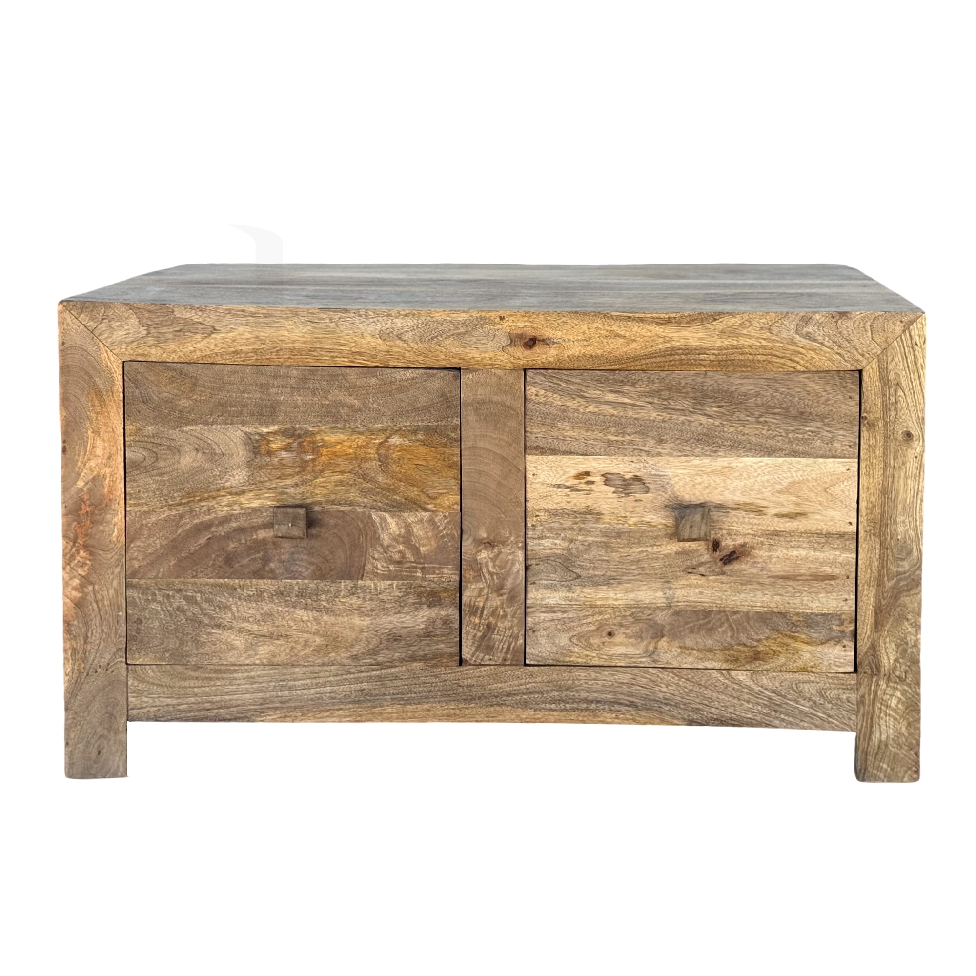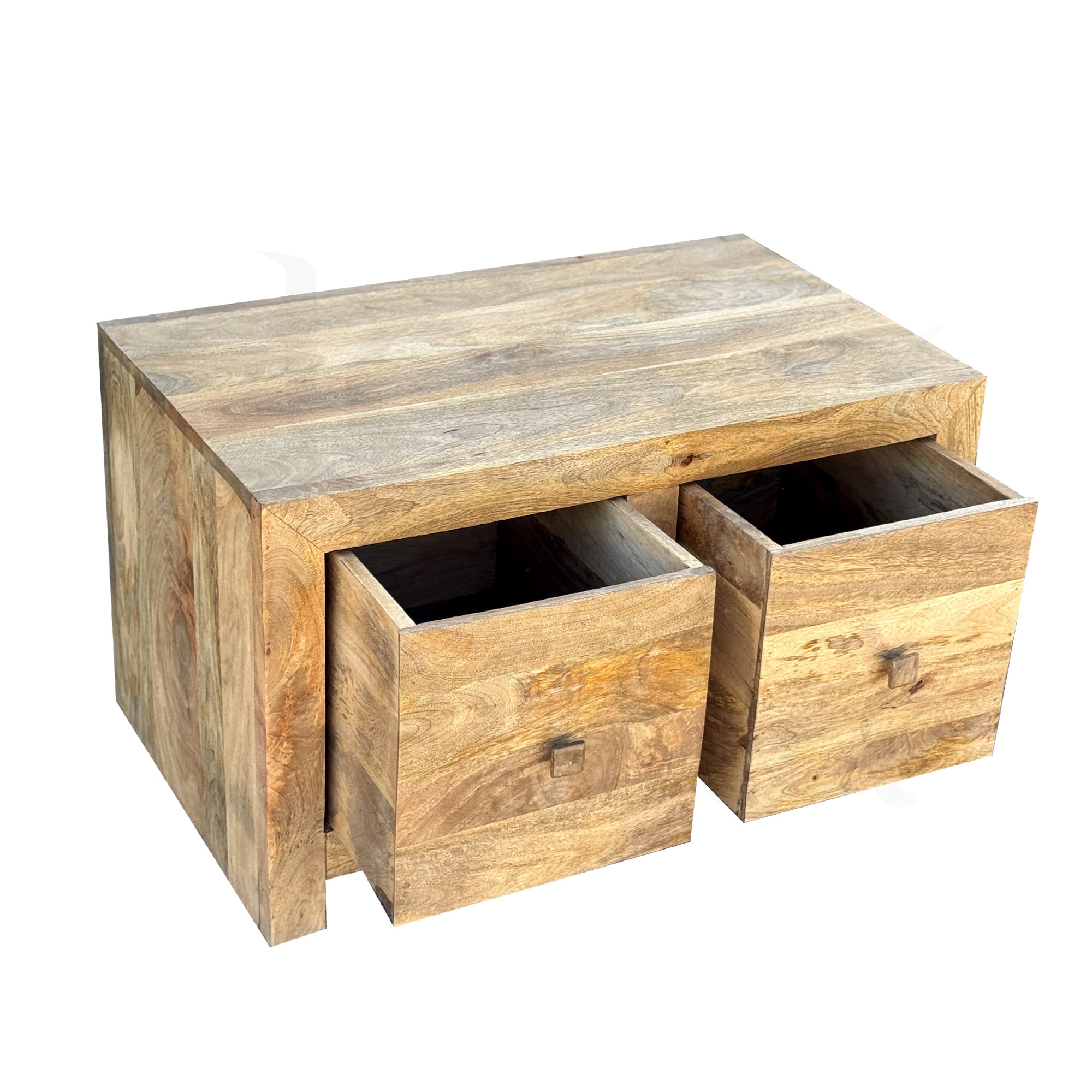 Indyjski drewniany stolik kawowy wyposażony jest w przestronne szuflady, które oferują wystarczająco miejsca, aby przechowywać piloty, czasopisma i inne drobne przedmioty potrzebne w salonie, utrzymując porządek i estetyczny wygląd. Minimalistyczny design z subtelnymi, ręcznie wykonanymi uchwytami podkreśla naturalne piękno drewna i harmonijnie współgra z różnorodnymi stylami wnętrzarskimi, od nowoczesnych po bardziej tradycyjne.