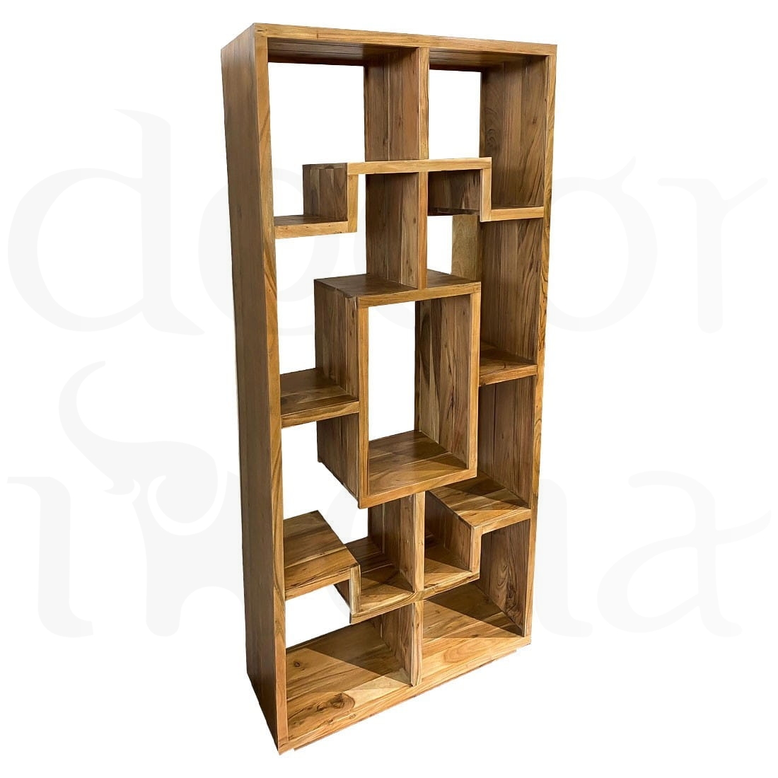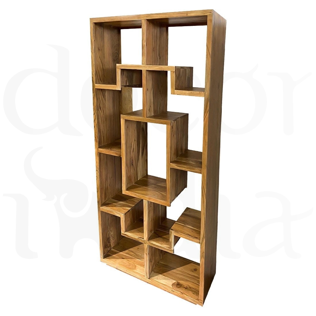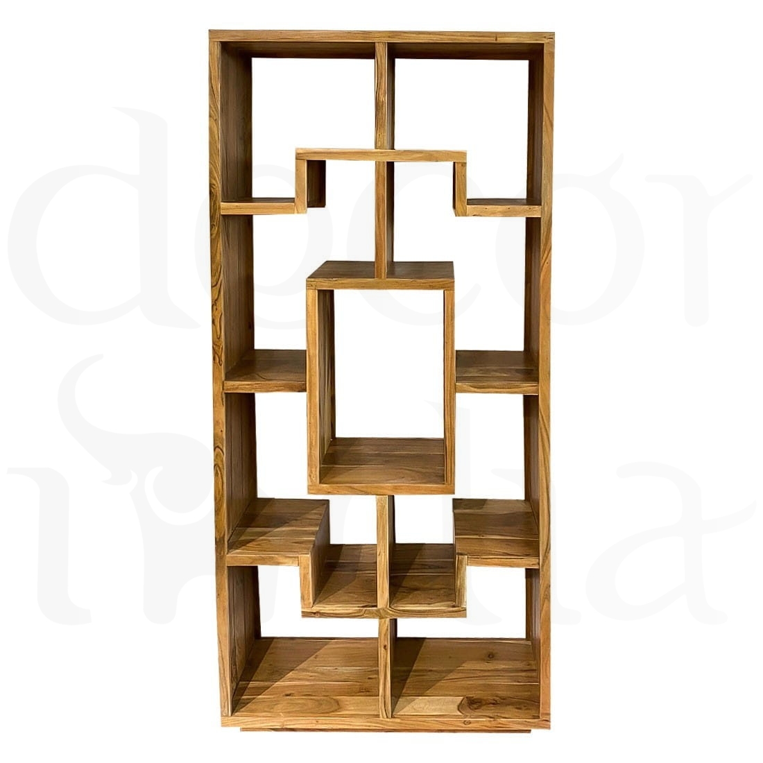 Ten nowoczesny indyjski drewniany regał z litego drewna akacji to doskonała propozycja dla osób szukających zarówno funkcjonalności, jak i wyjątkowego stylu w swoim wnętrzu.Drewniany regał charakteryzuje się unikalną, geometryczną strukturą, która dodaje dynamicznego akcentu do każdego pomieszczenia, od salonu po domowe biuro. Lite drewno akacji, z którego jest wykonany, zapewnia nie tylko trwałość i stabilność, ale także piękno naturalnych wzorów i ciepłych odcieni drewna. Idealny do wyeksponowania książek, ozdób, roślin czy kolekcji przedmiotów artystycznych, ten indyjski drewniany regał to wyjątkowy element dekoracyjny, który przyciąga wzrok i podkreśla nowoczesny charakter przestrzeni.