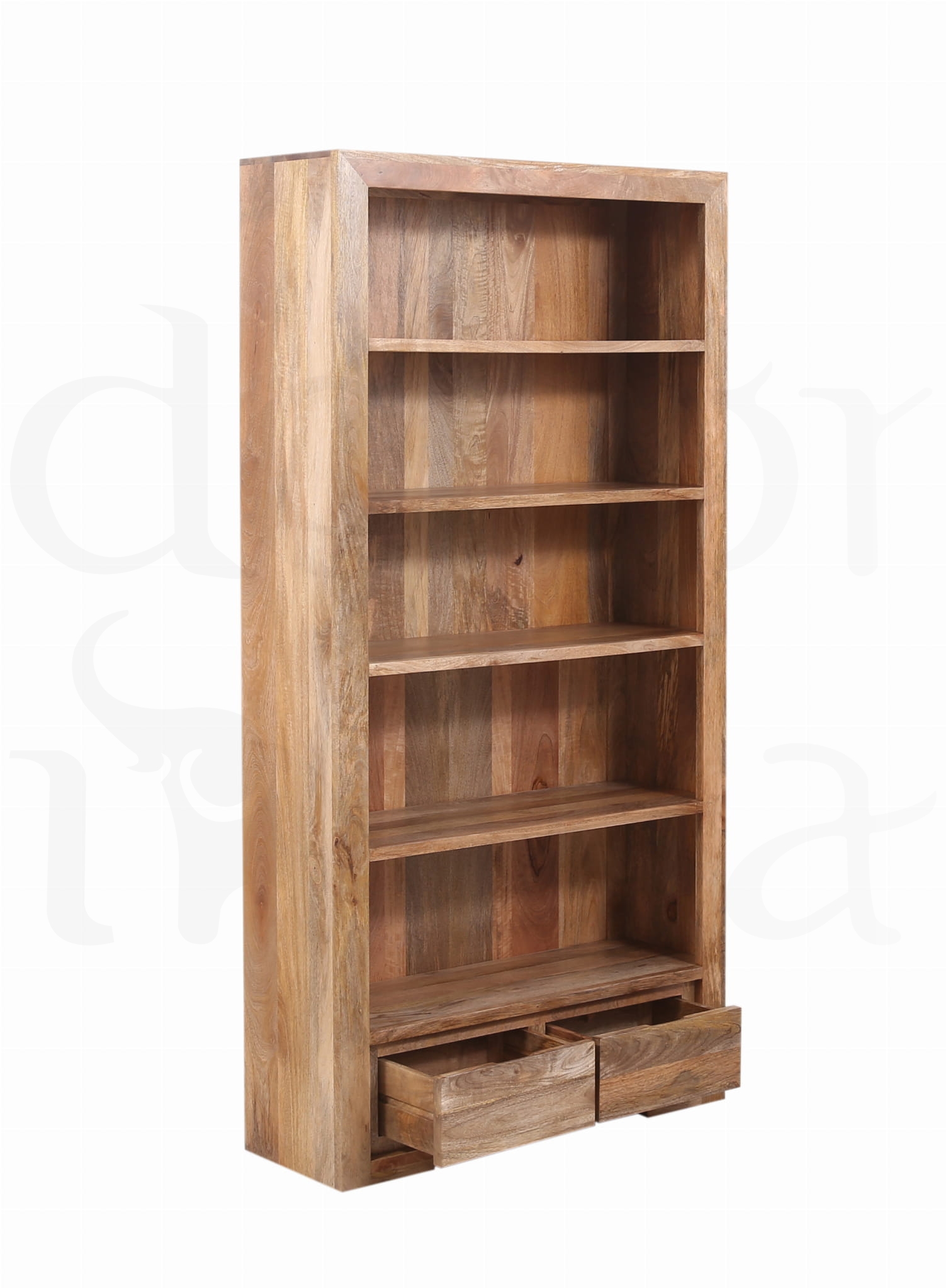 Otwarta konstrukcja regału umożliwia eksponowanie ulubionych książek, dekoracji lub roślin, tworząc przytulną i harmonijną przestrzeń. Dwie pojemne szuflady na dole oferują dodatkową przestrzeń do przechowywania, pozwalając utrzymać porządek w sposób dyskretny i estetyczny.