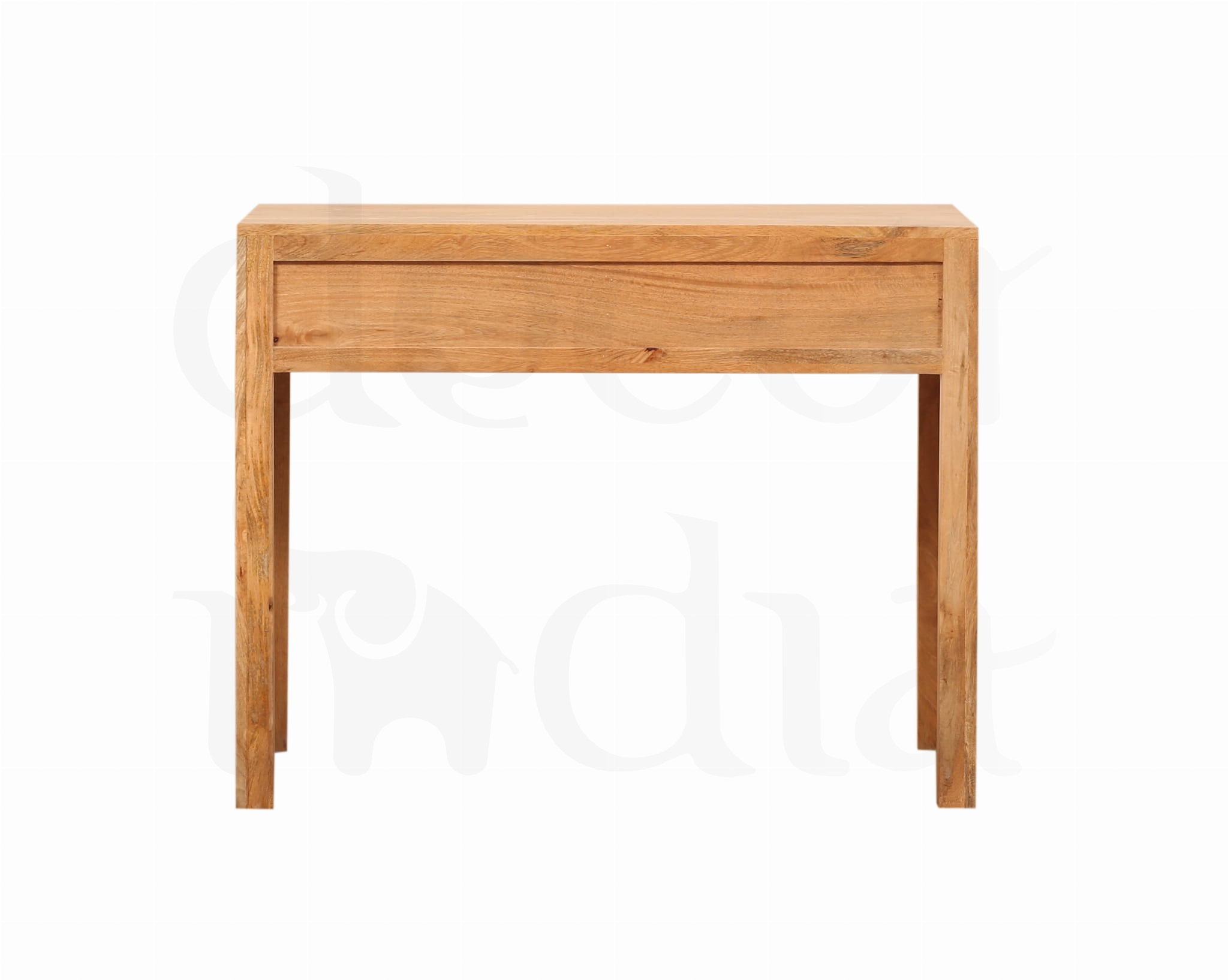 Naturalne wybarwienie drewna mango podkreśla piękne usłojenie, a lekka konstrukcja sprawia, że konsola doskonale wpisze się zarówno w klasyczne, jak i nowoczesne wnętrza. Idealna do przedpokoju, salonu czy sypialni — jako praktyczne miejsce na dekoracje lub drobiazgi.