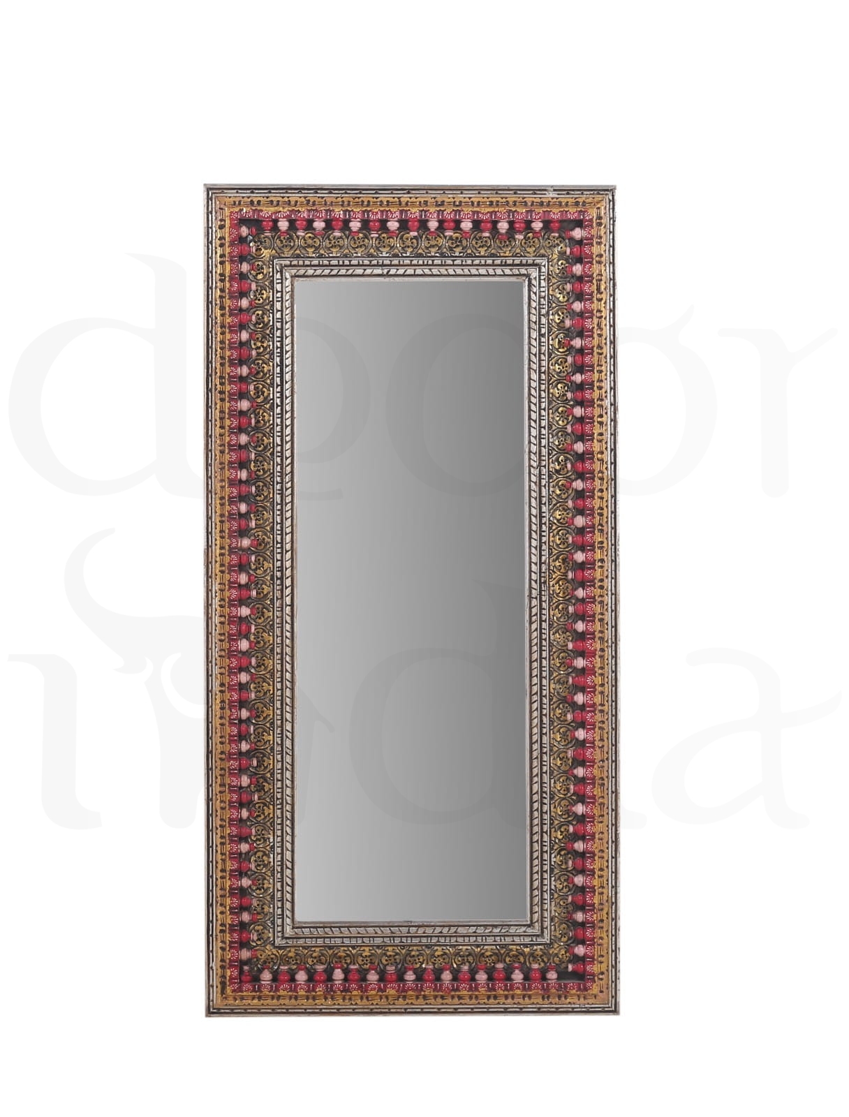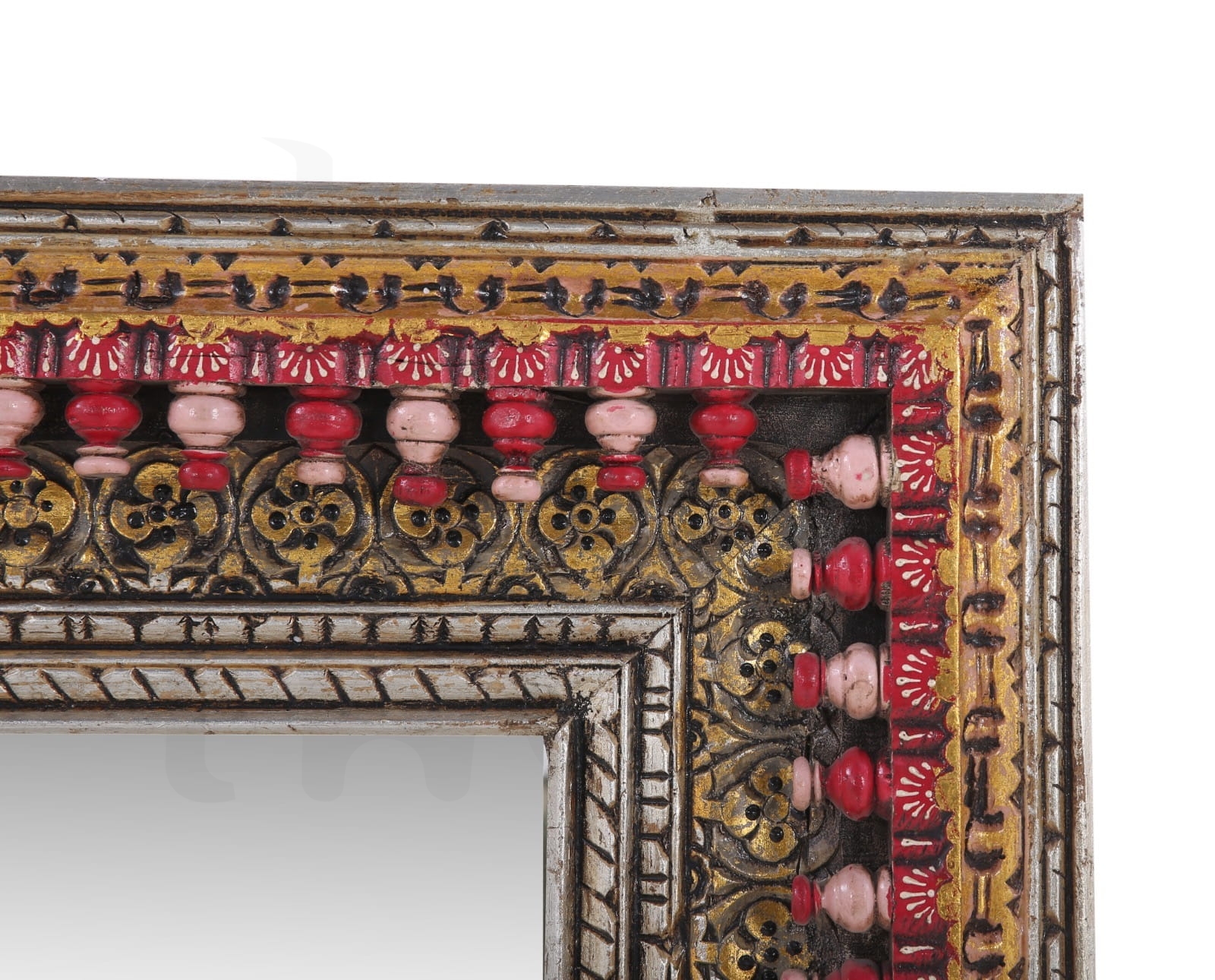 Drewniane rzeźbione lustro z ręcznie malowanymi