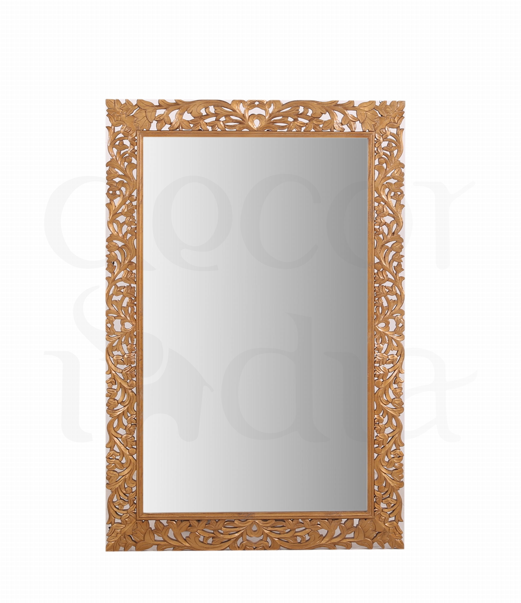 Duża indyjska rama lustra – ręcznie rzeźbiona, z drewna mango, w kolorze złotym