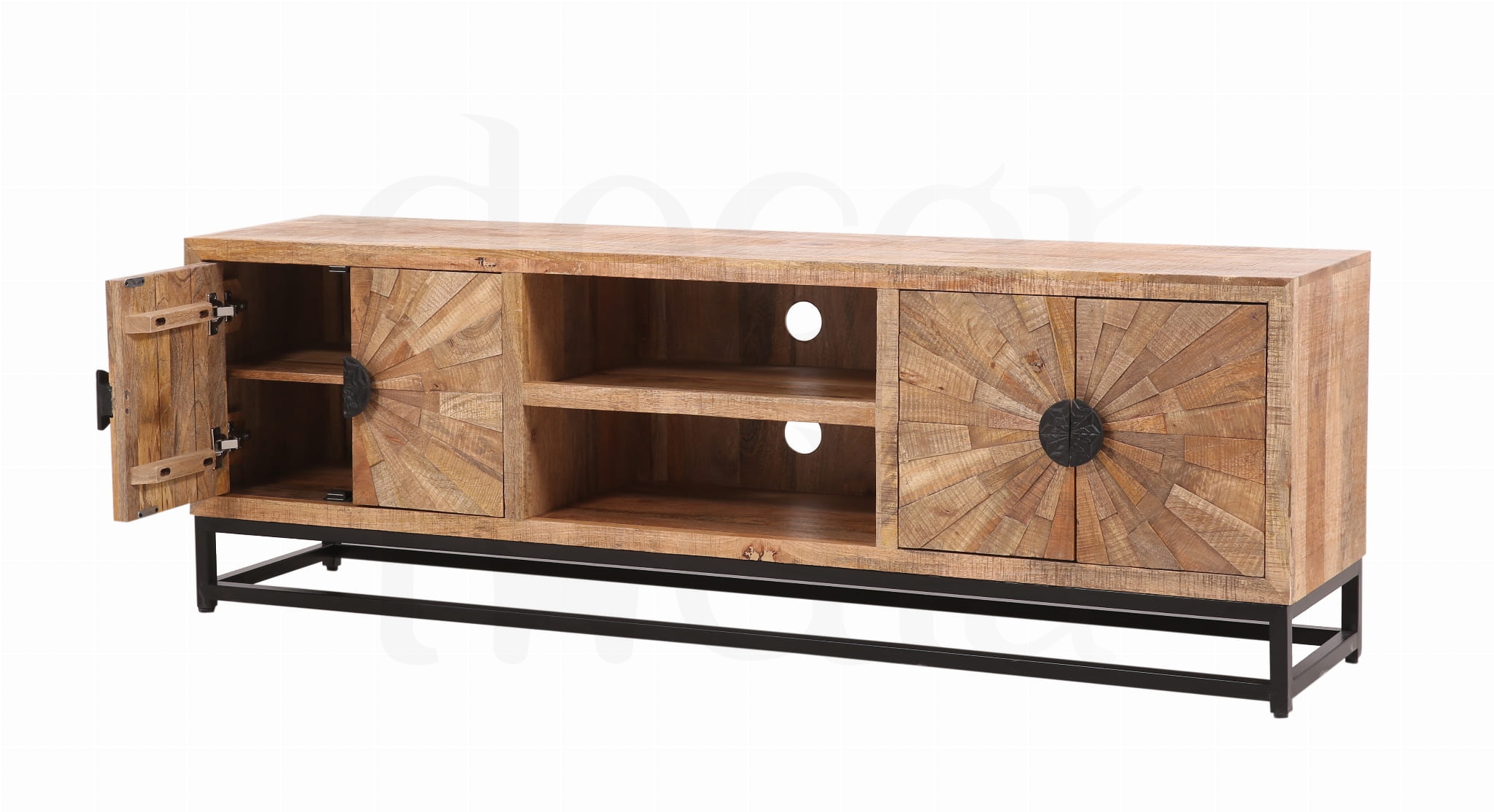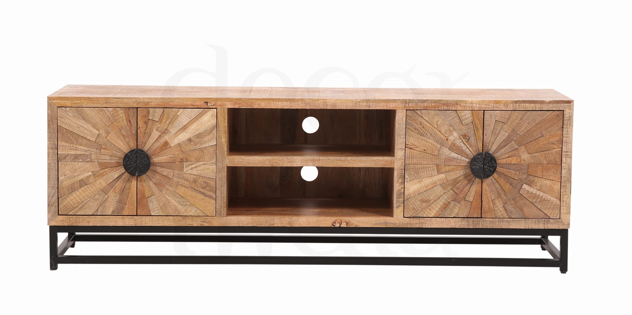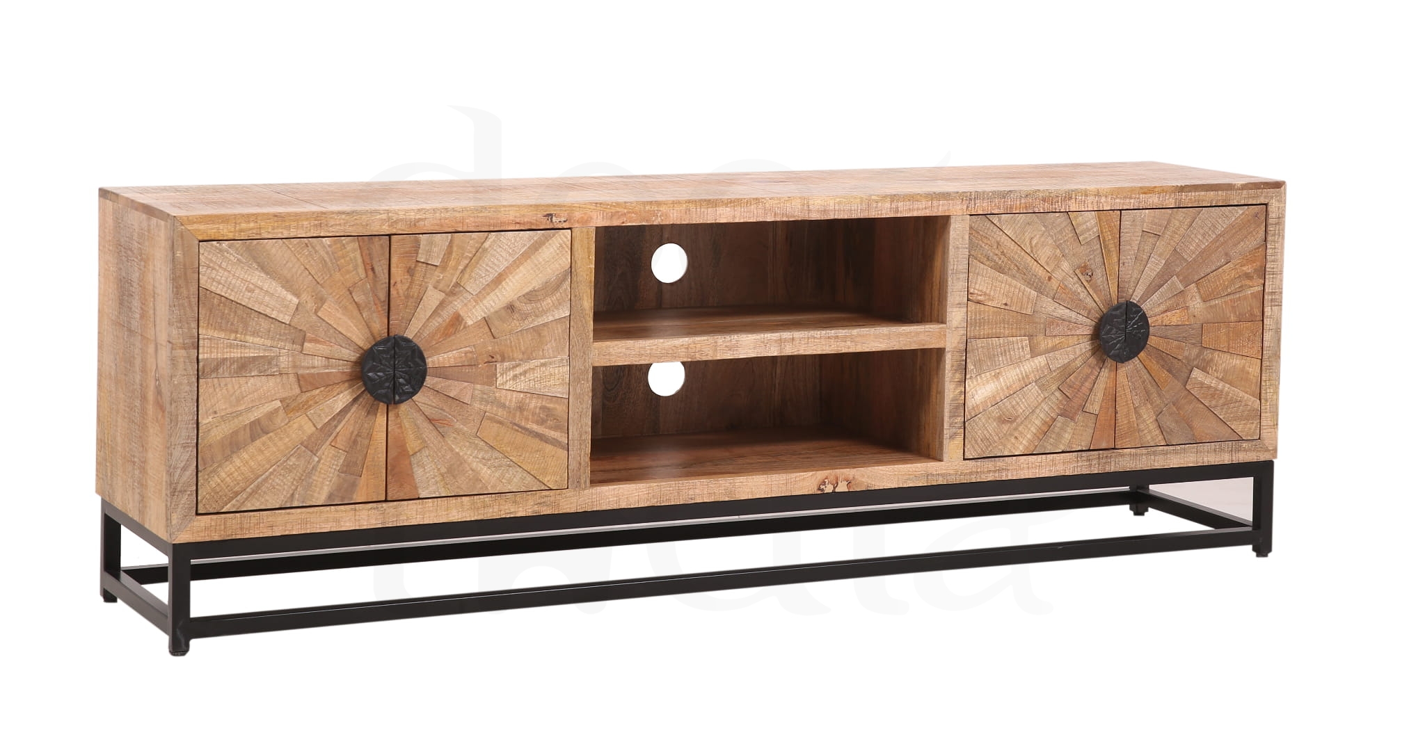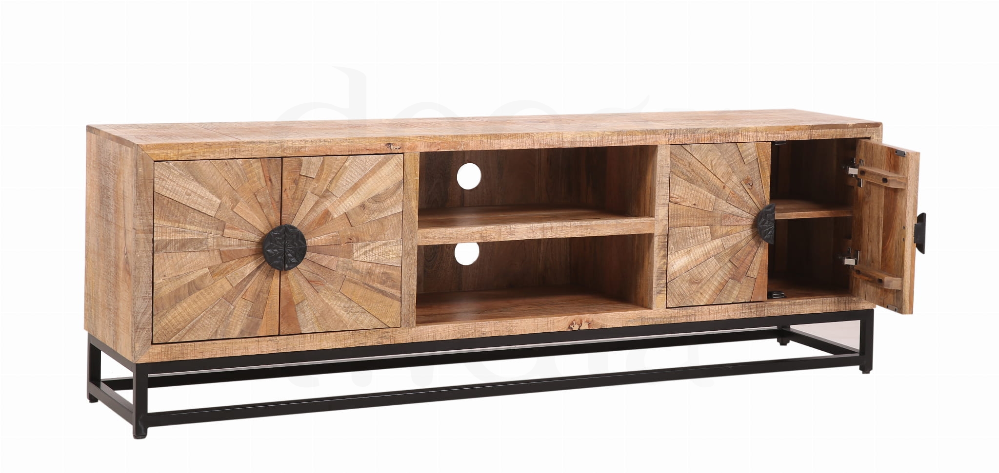 Ekskluzywna Television Sun Rays z drewna mango w stylu loftowym to naprawdę ciekawy element wyposażenia wnętrz, który łączy naturalne materiały z industrialnym designem. Drewno mango jest cenione za swoją twardość, trwałość i unikalną fakturę, która w połączeniu z prostą, surową formą loftową może stworzyć niesamowity efekt w każdym wnętrzu.