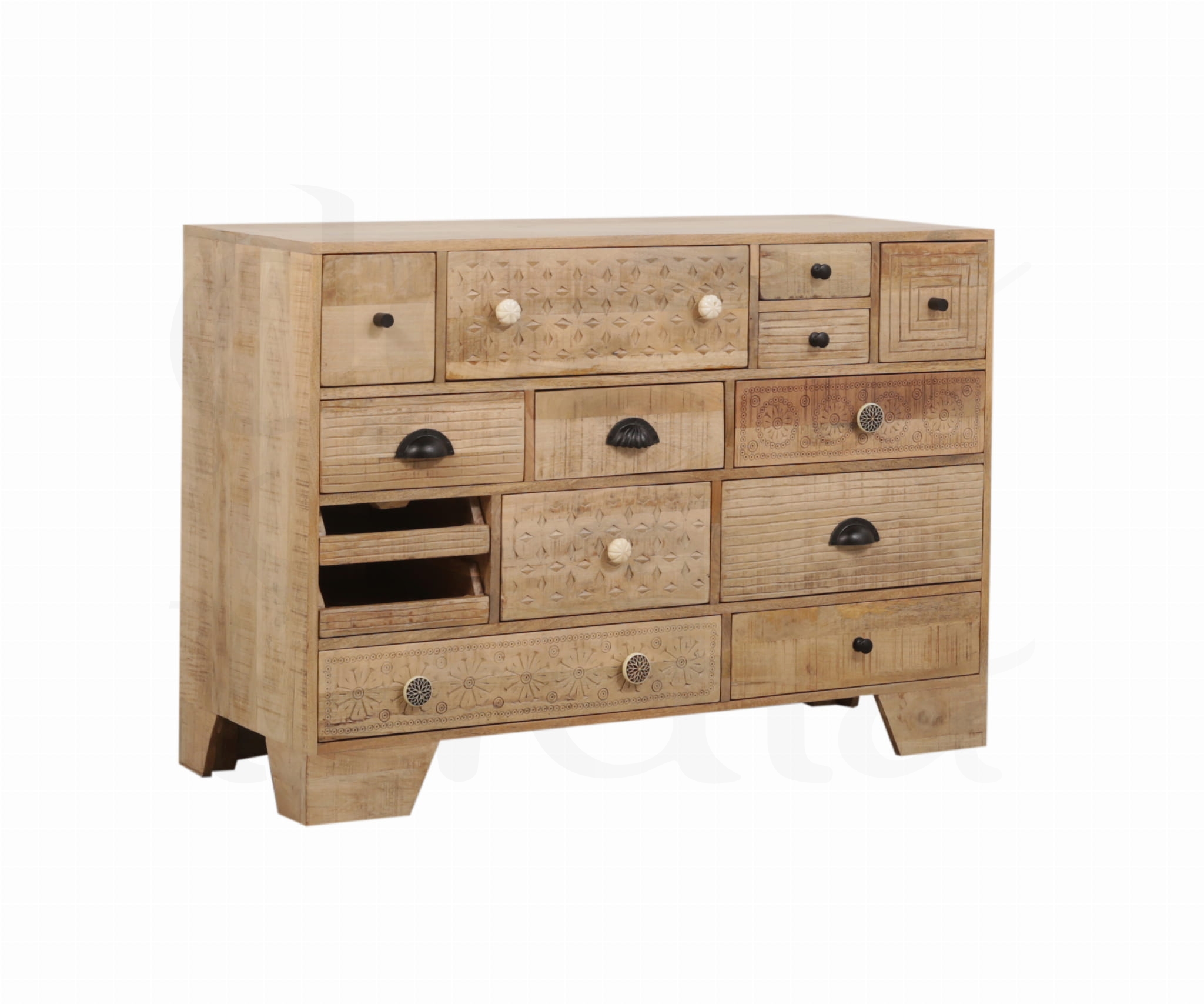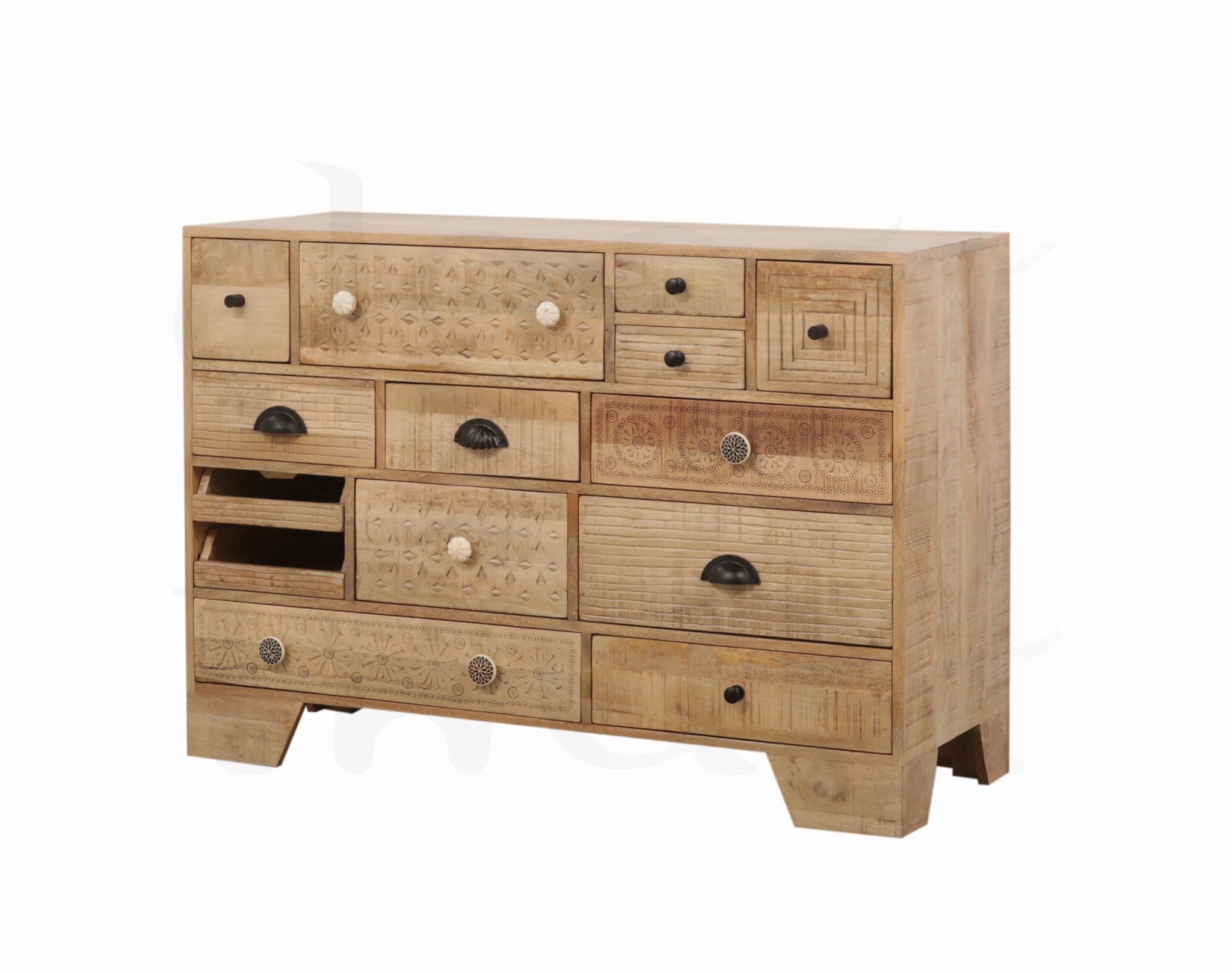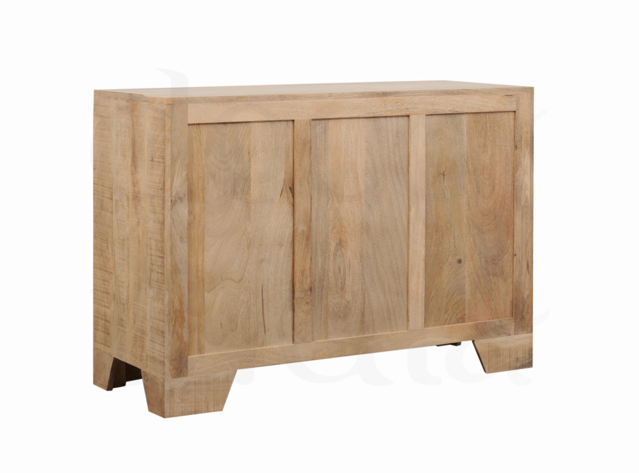 Elegancka, kompaktowa komoda mistrzowsko wykonana z litego drewna mango w loftowym stylu. Zachwyca precyzją rzemieślniczego wykończenia oraz naturalnym usłojeniem drewna, które nadaje każdemu egzemplarzowi unikalny charakter. Przemyślana forma łączy nowoczesny design z praktycznością, oferując wygodną przestrzeń do przechowywania bez zajmowania dużo miejsca. To stylowy akcent, który doskonale dopełni każde wnętrze.