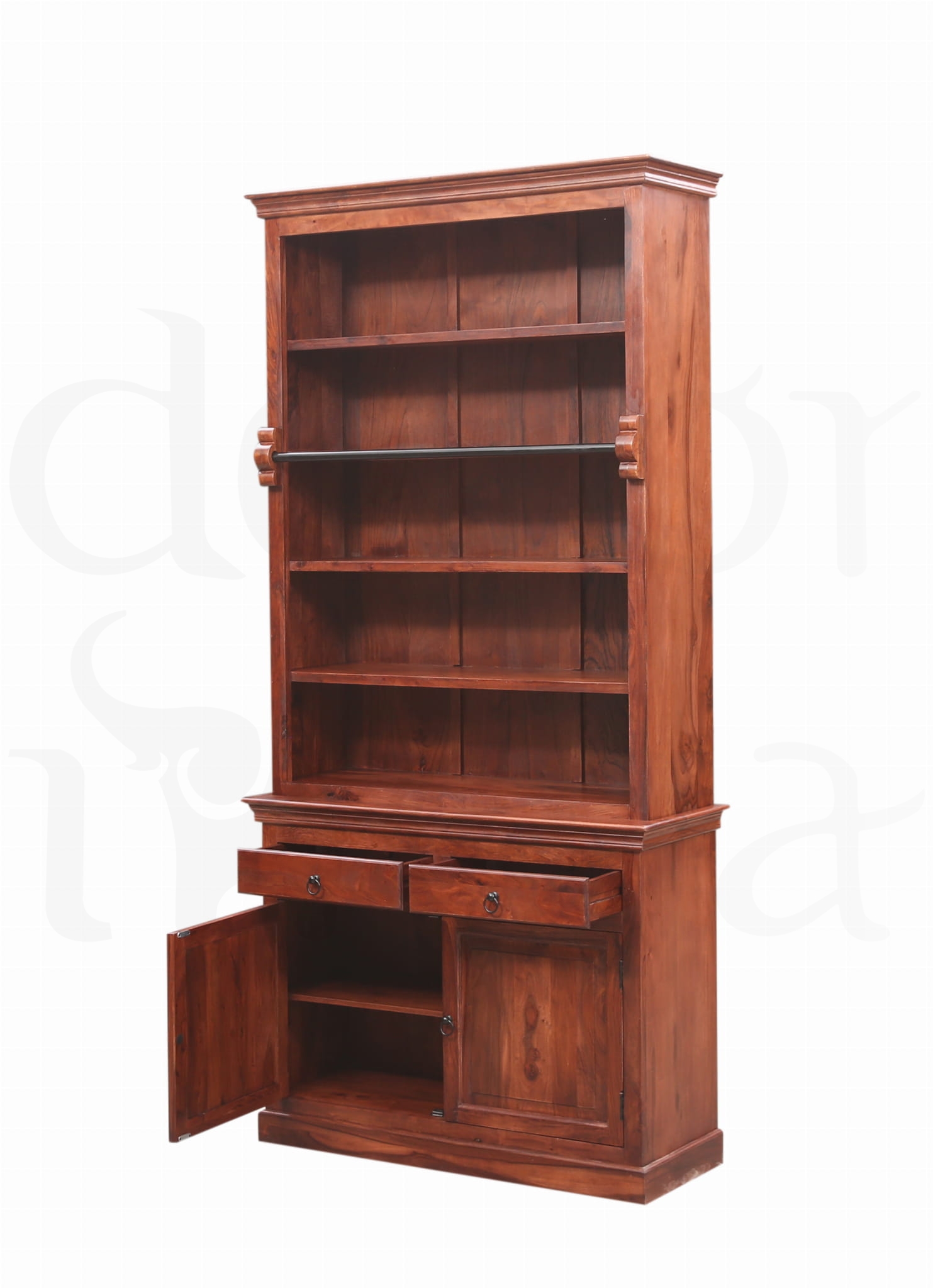 Wnieś do swojego wnętrza klasę i wyrafinowanie dzięki eleganckiej bibliotece wykonanej z palisandru indyjskiego. To mebel, który łączy w sobie funkcjonalność z prawdziwą sztuką rzemiosła.