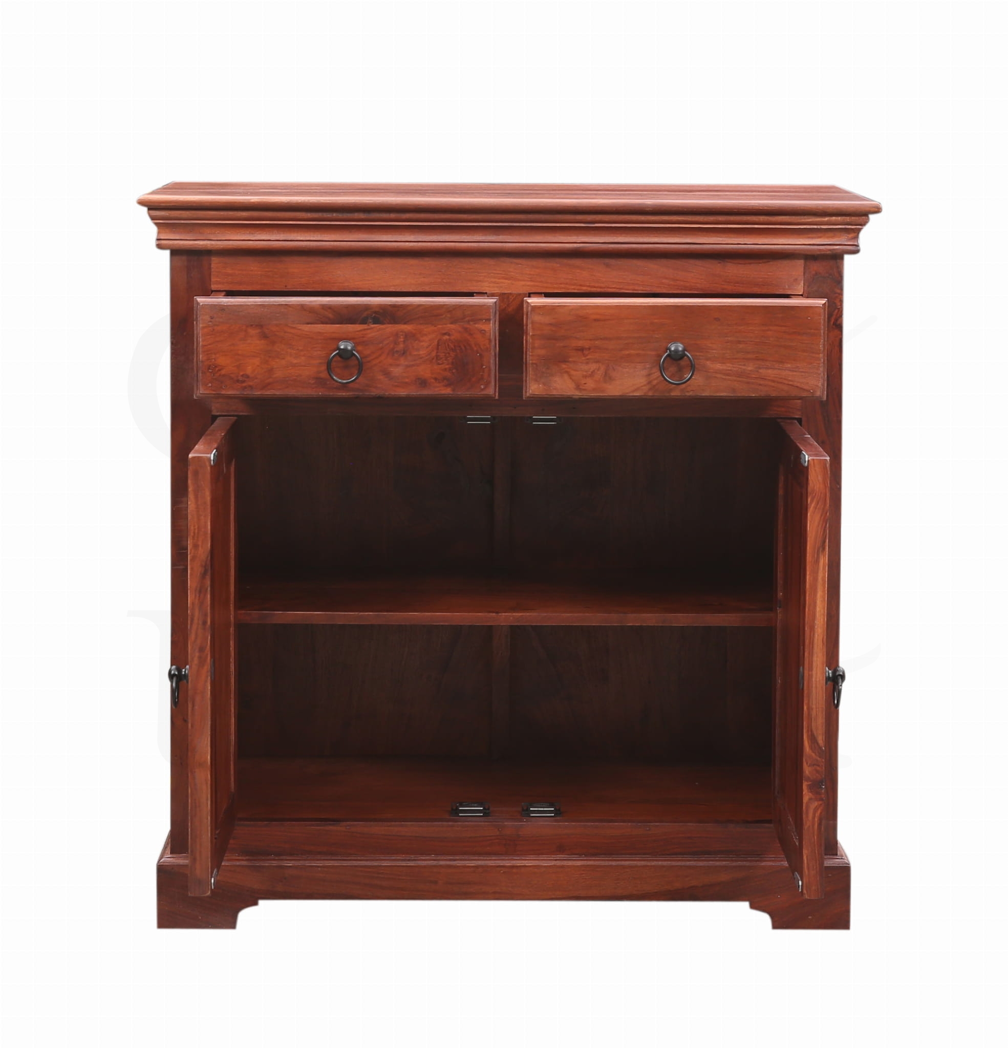 Odkryj wyjątkowe piękno eleganckiej komody wykonanej z palisandru indyjskiego – drewna cenionego za swoją trwałość, bogaty kolor i niepowtarzalne usłojenie.