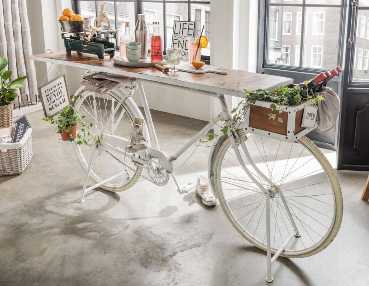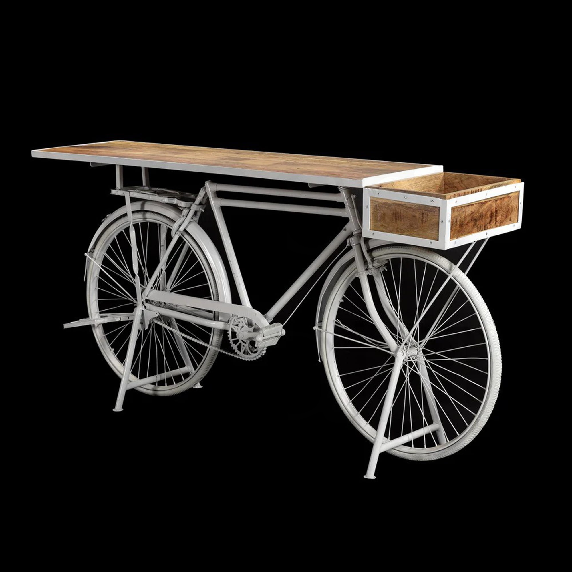 Biała indyjska drewniana koncola rowerowa z drewnianym akcentem w stylu loft