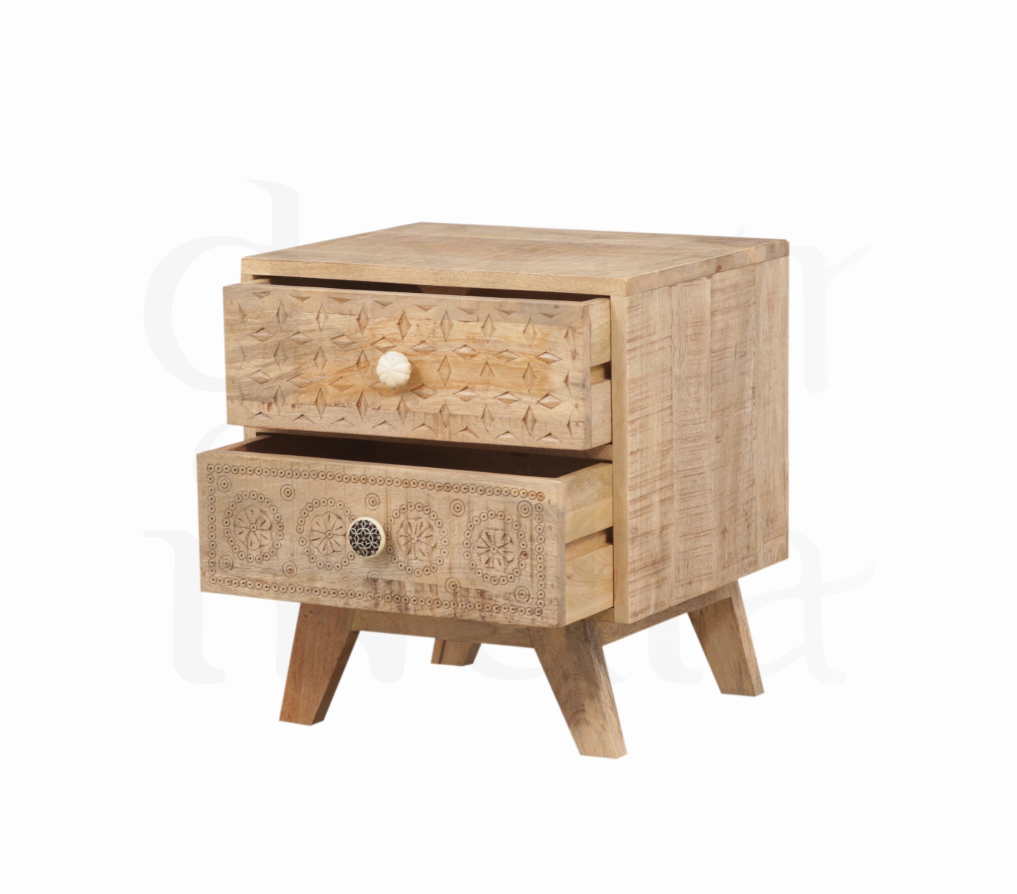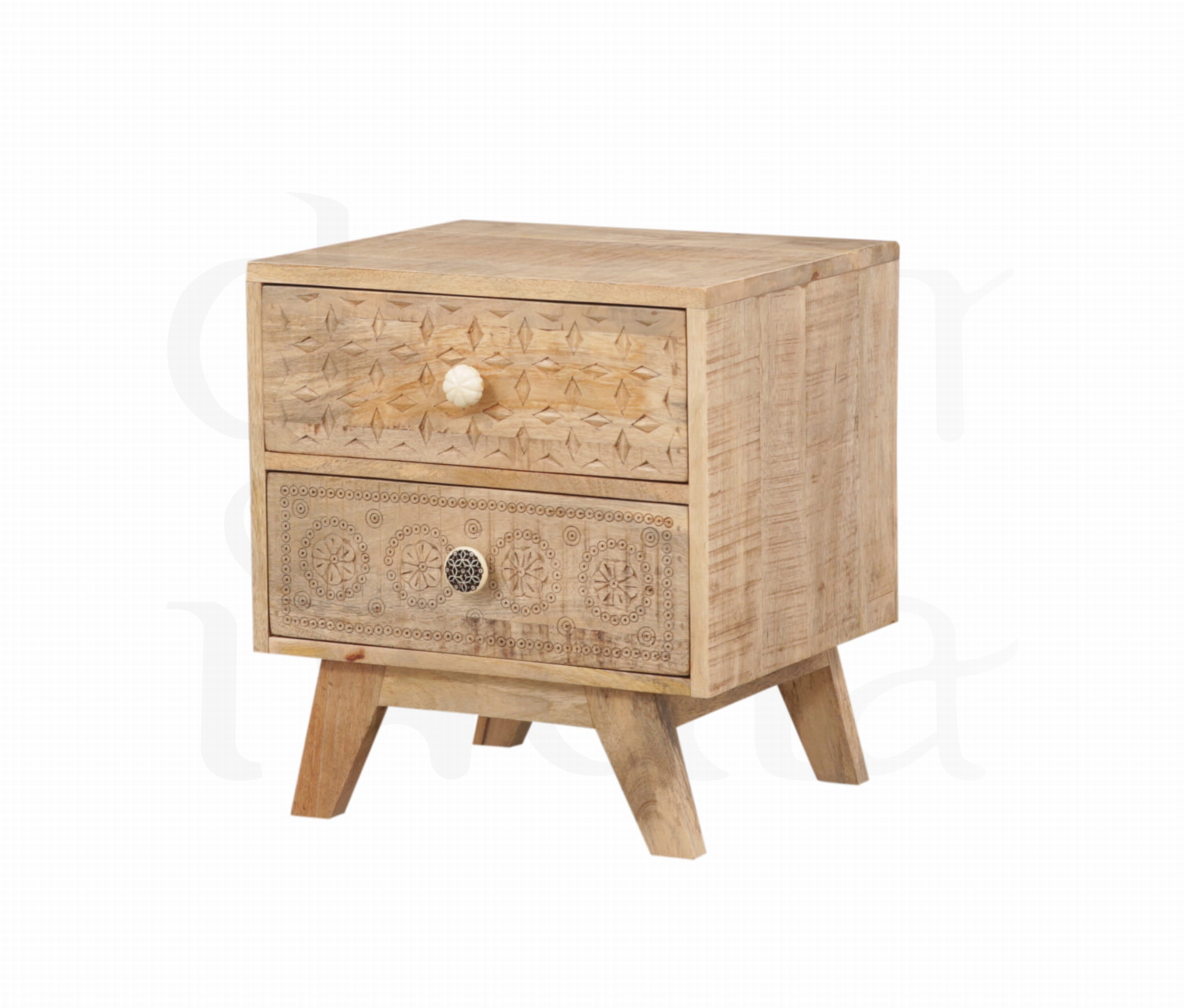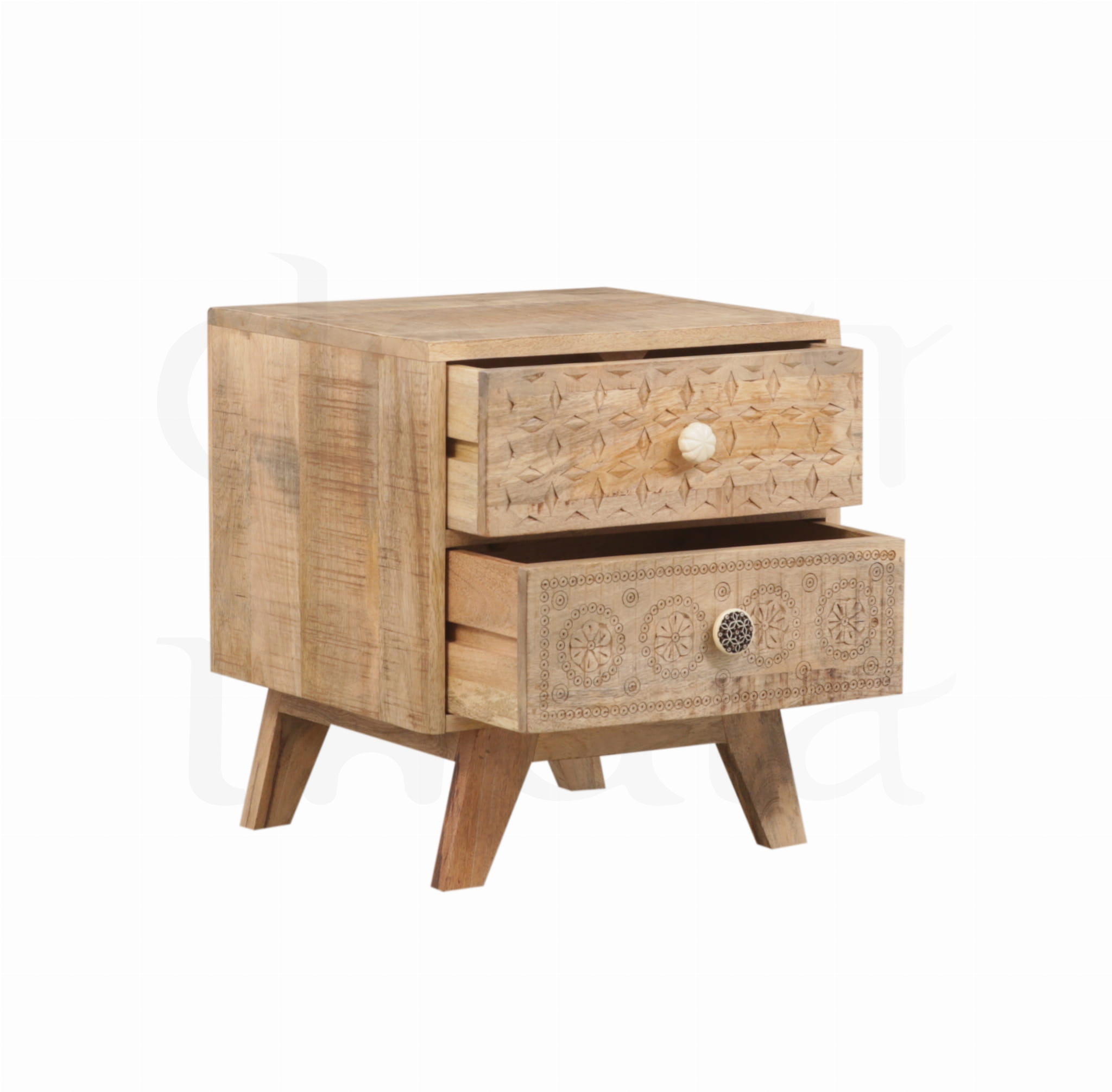 Indyjska szafka nocna w stylu loft to wyjątkowe połączenie surowej formy z delikatnym, ręcznym zdobieniem. Inspirowana indyjskim rzemiosłem, zachwyca subtelną pracą dłoni mistrzów, która nadaje jej niepowtarzalny charakter i artystyczną duszę.