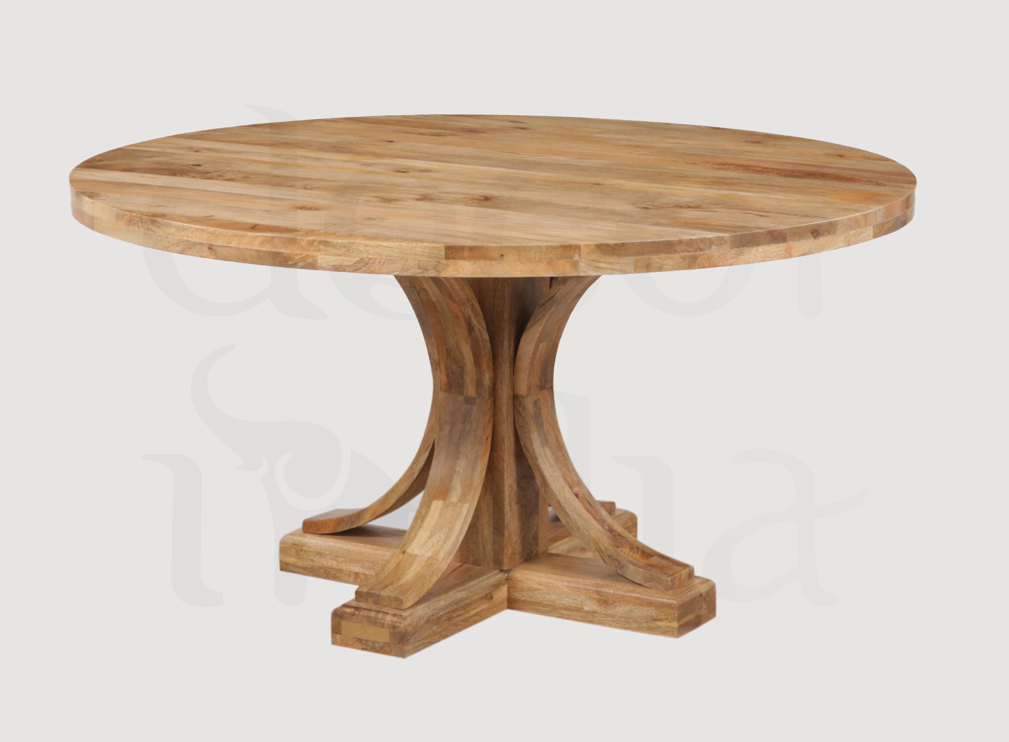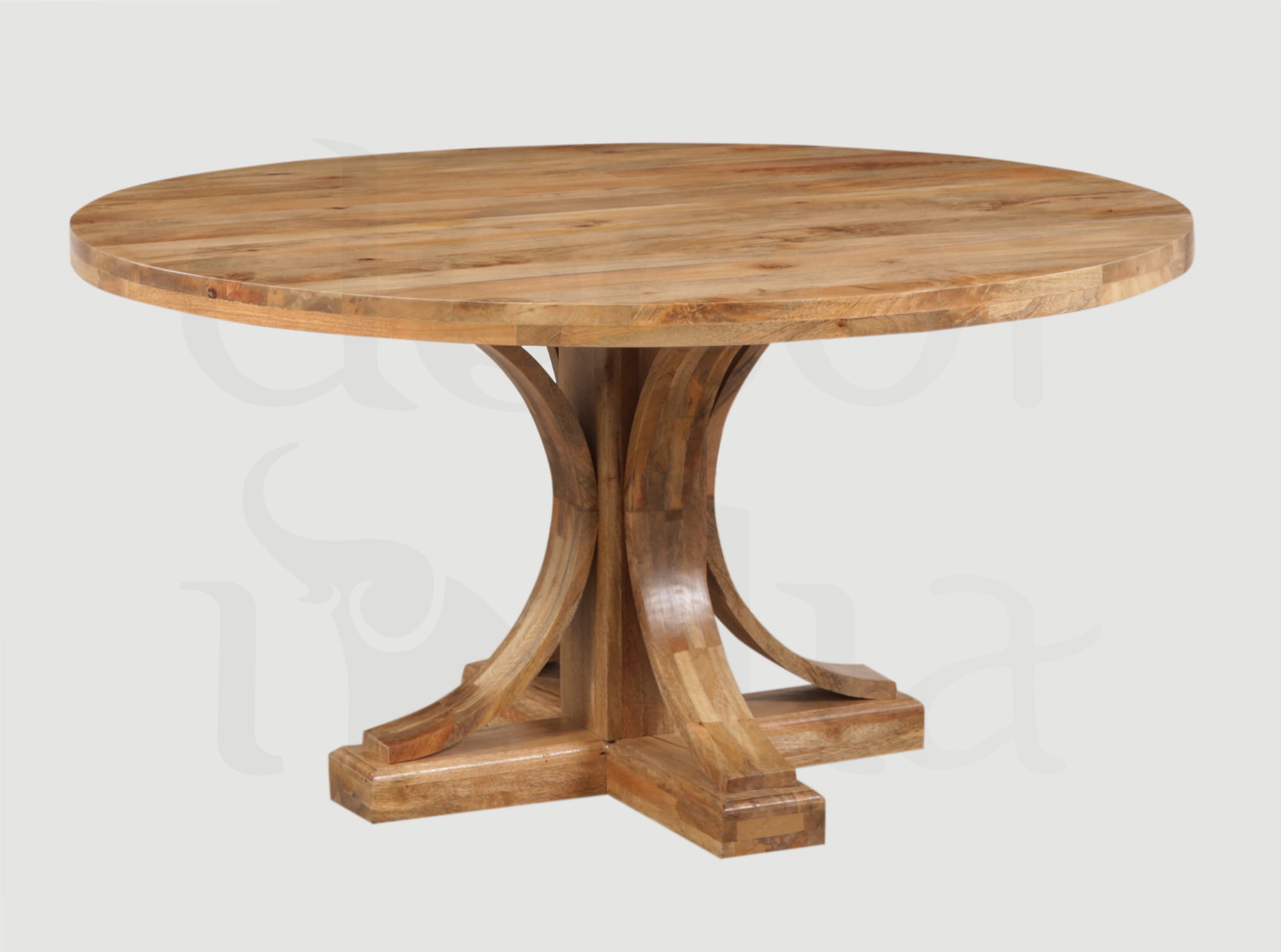 Indyjski okrągły stół jadalniany z drewna mango – klasyczny design to ponadczasowy mebel, który wnosi do wnętrza naturalne ciepło, elegancję i autentyczny charakter. Wykonany z litego drewna mango, zachwyca trwałością, bogatym usłojeniem oraz ciepłą, naturalną kolorystyką.