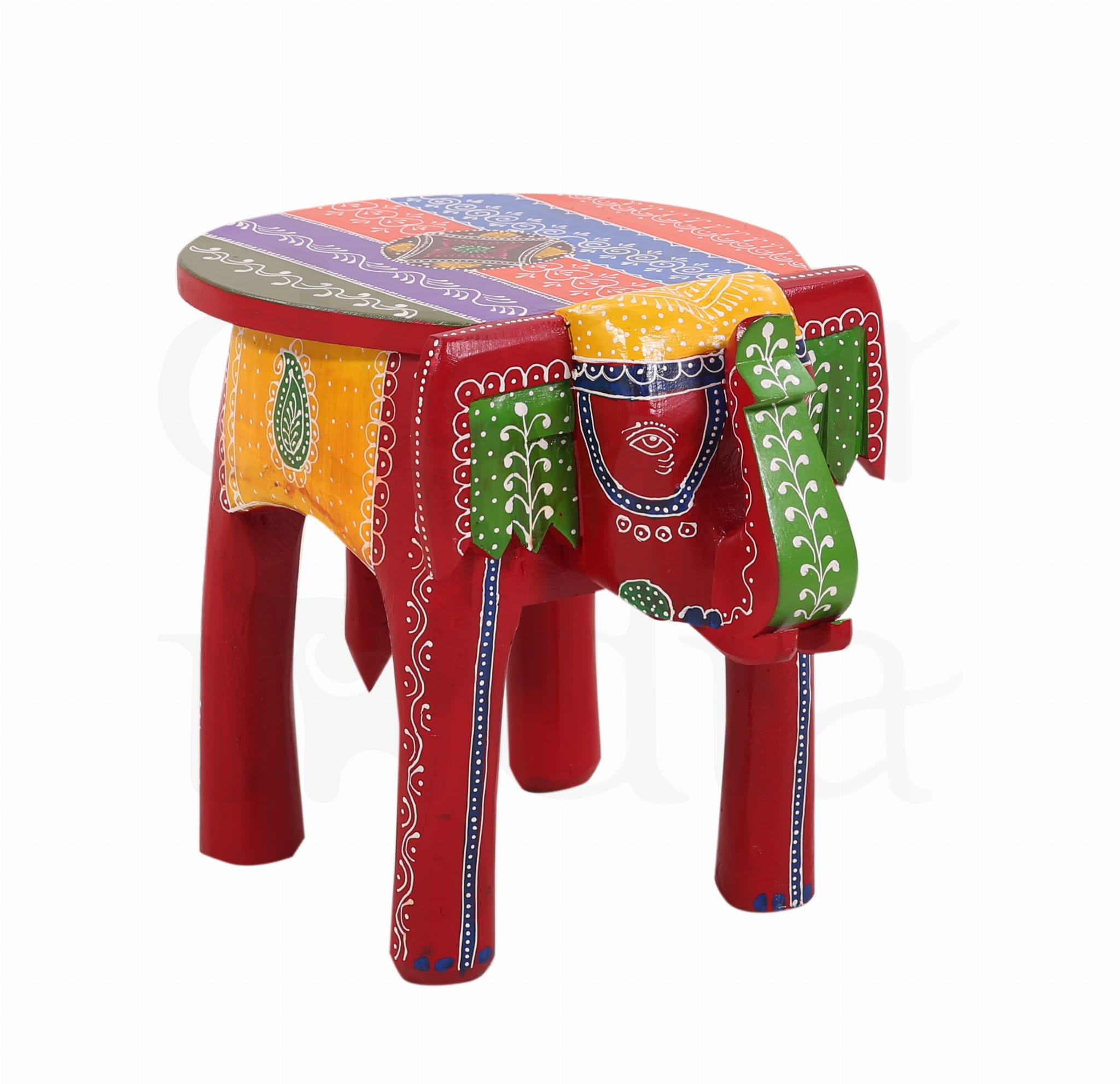 Kolorowy Stołek Słoń – Egzotyczna Dekoracja z Indii
