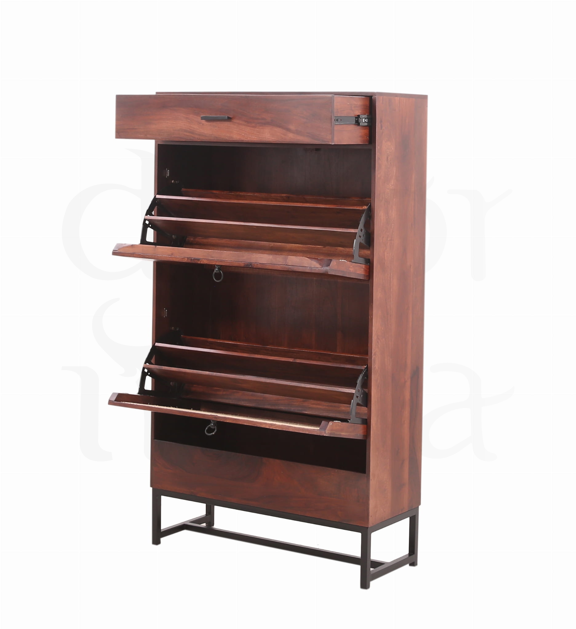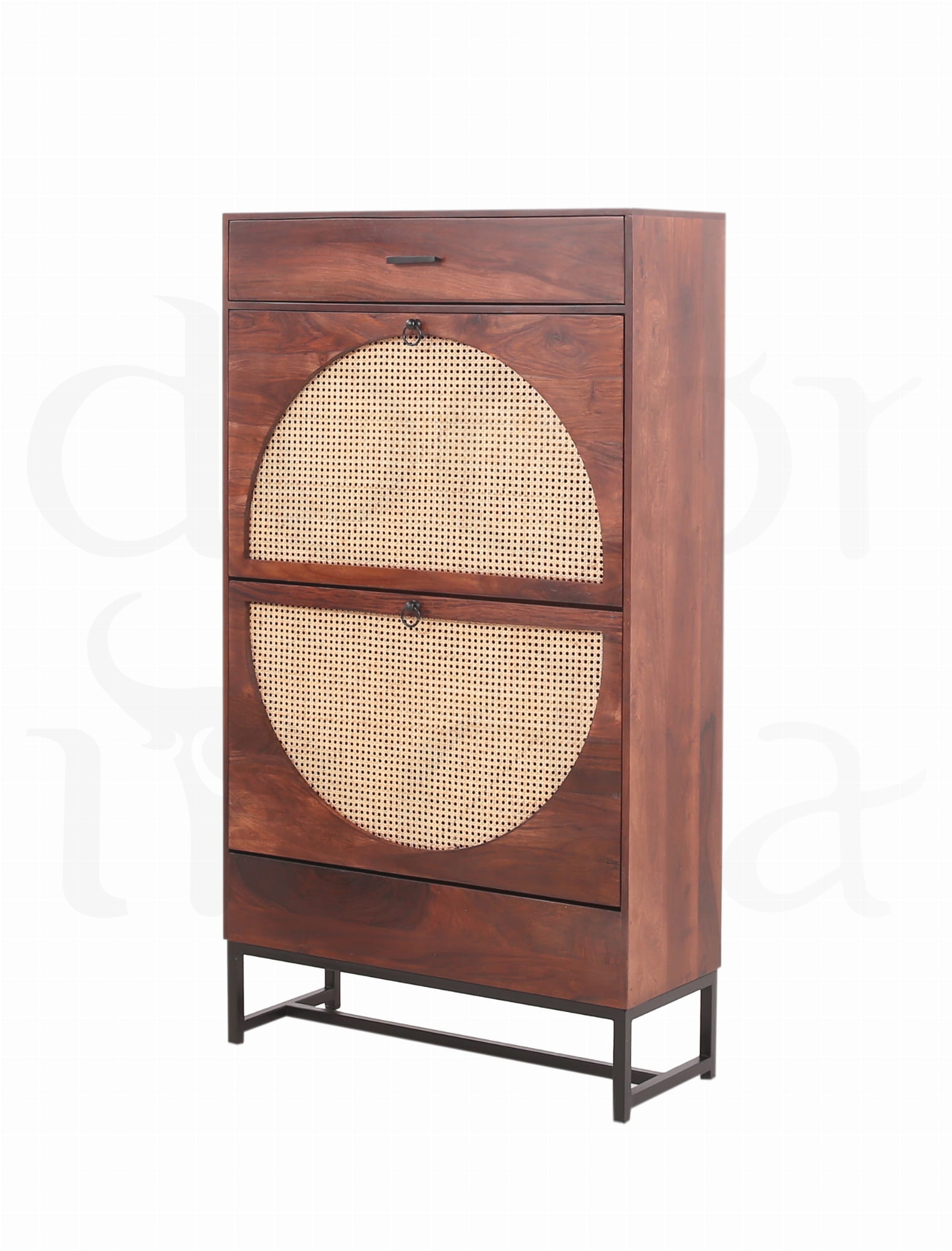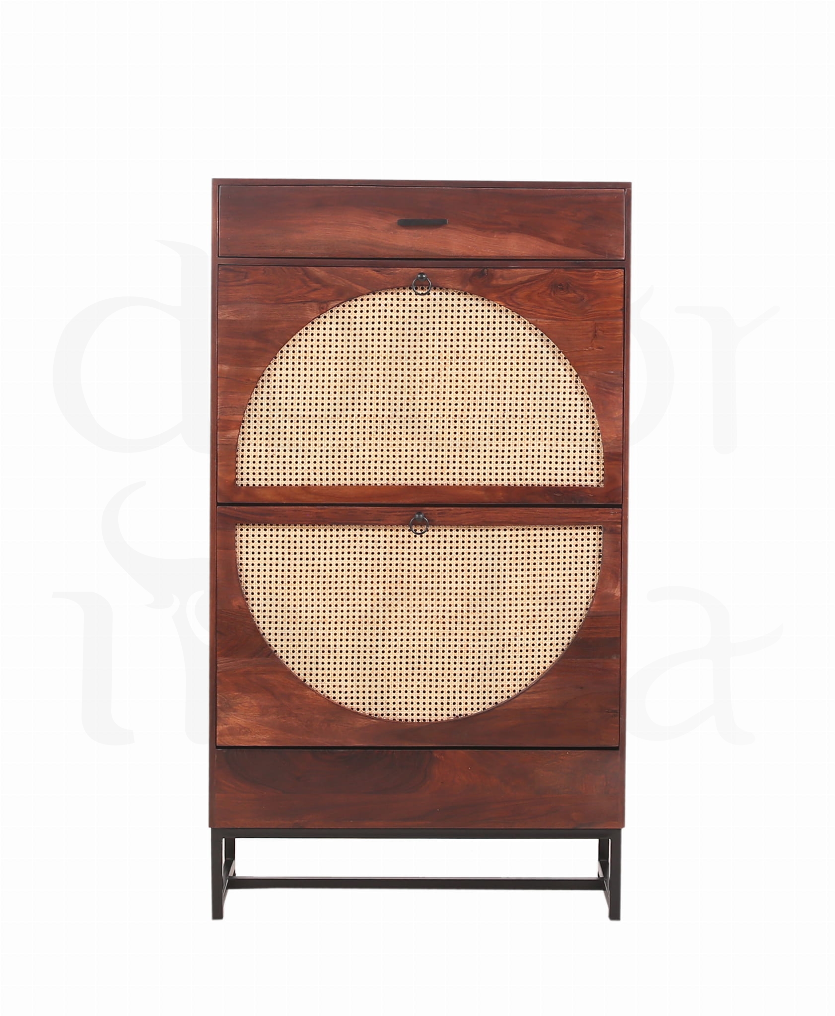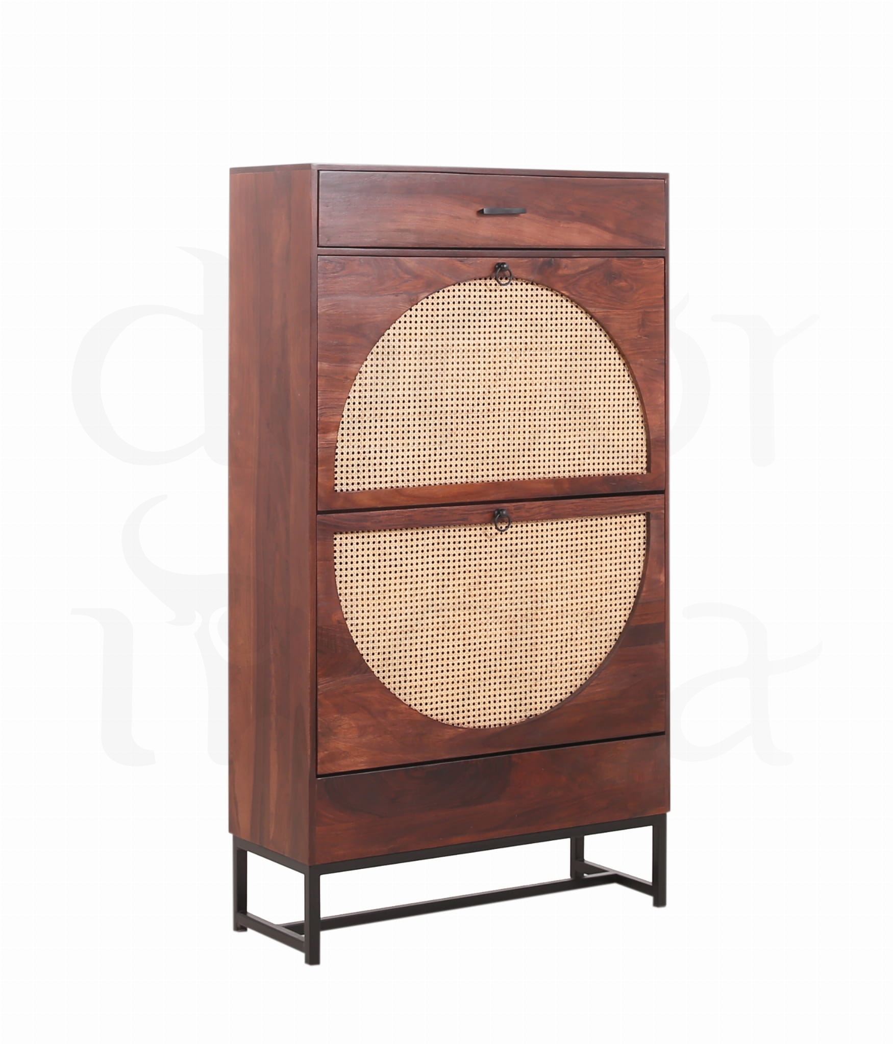 Stylowa i funkcjonalna szafka na buty wykonana z wysokiej jakości drewna palisandrowego (sheesham) w eleganckim, ciemnym odcieniu to doskonały wybór dla osób ceniących naturalne materiały i ponadczasowy design.