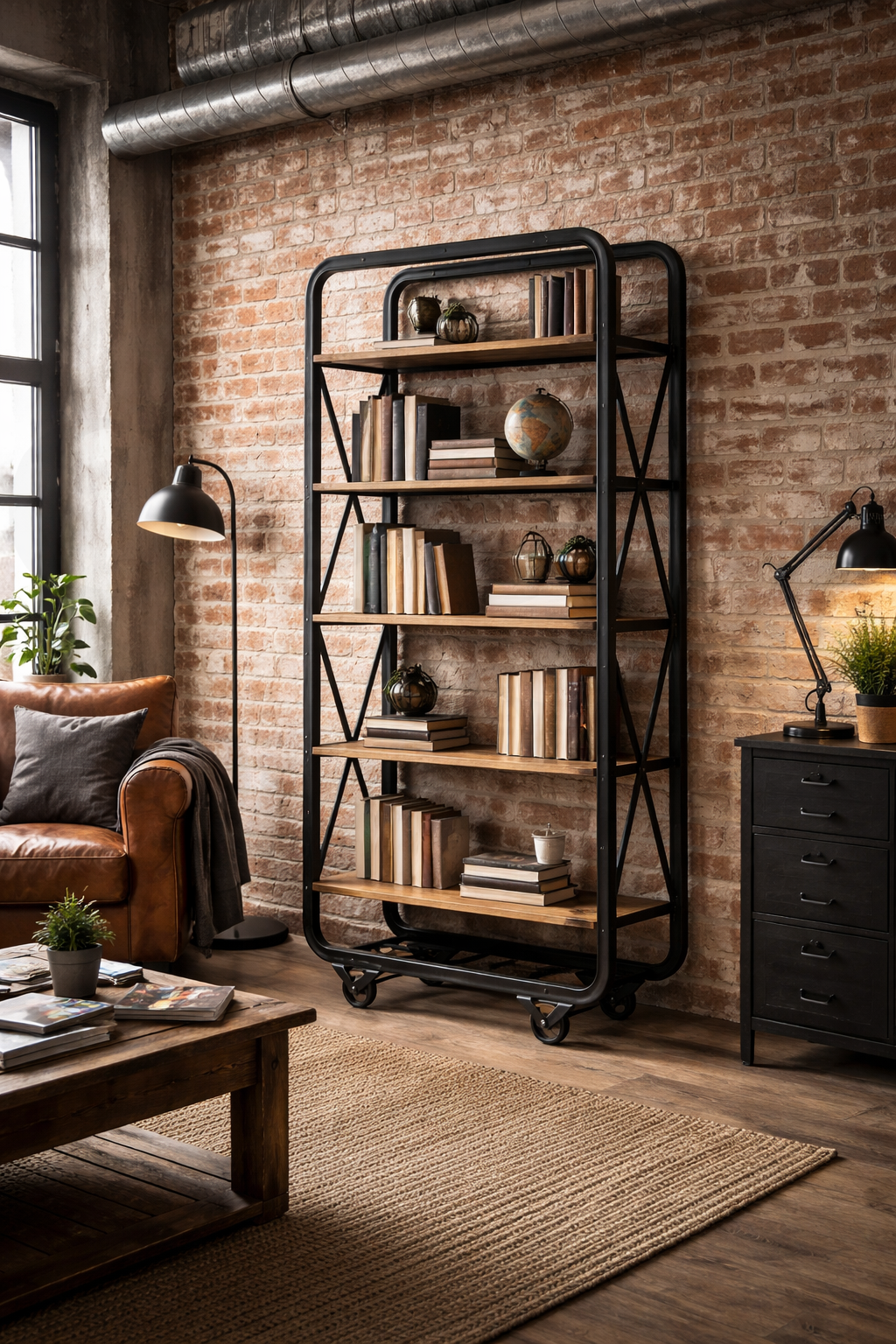 Regał Mango Loft z metalową ramą i kółkami
