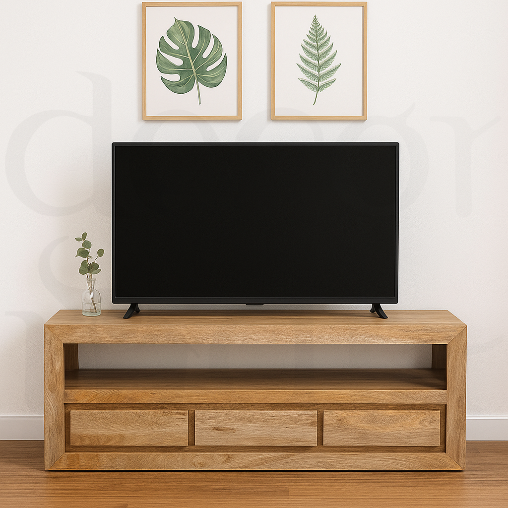 Szafka RTV w stylu ZEN z naturalnego drewna mango – 3 szuflady