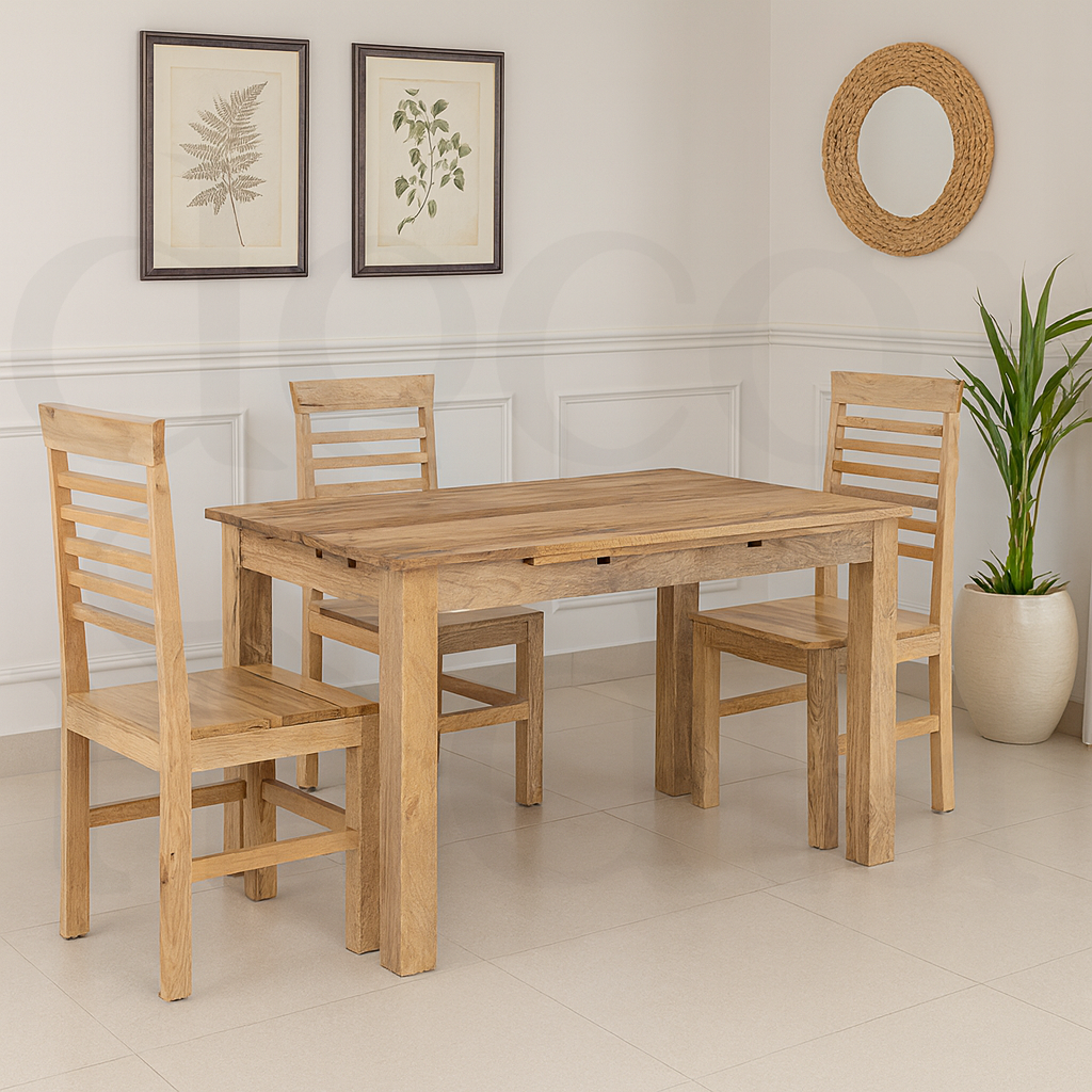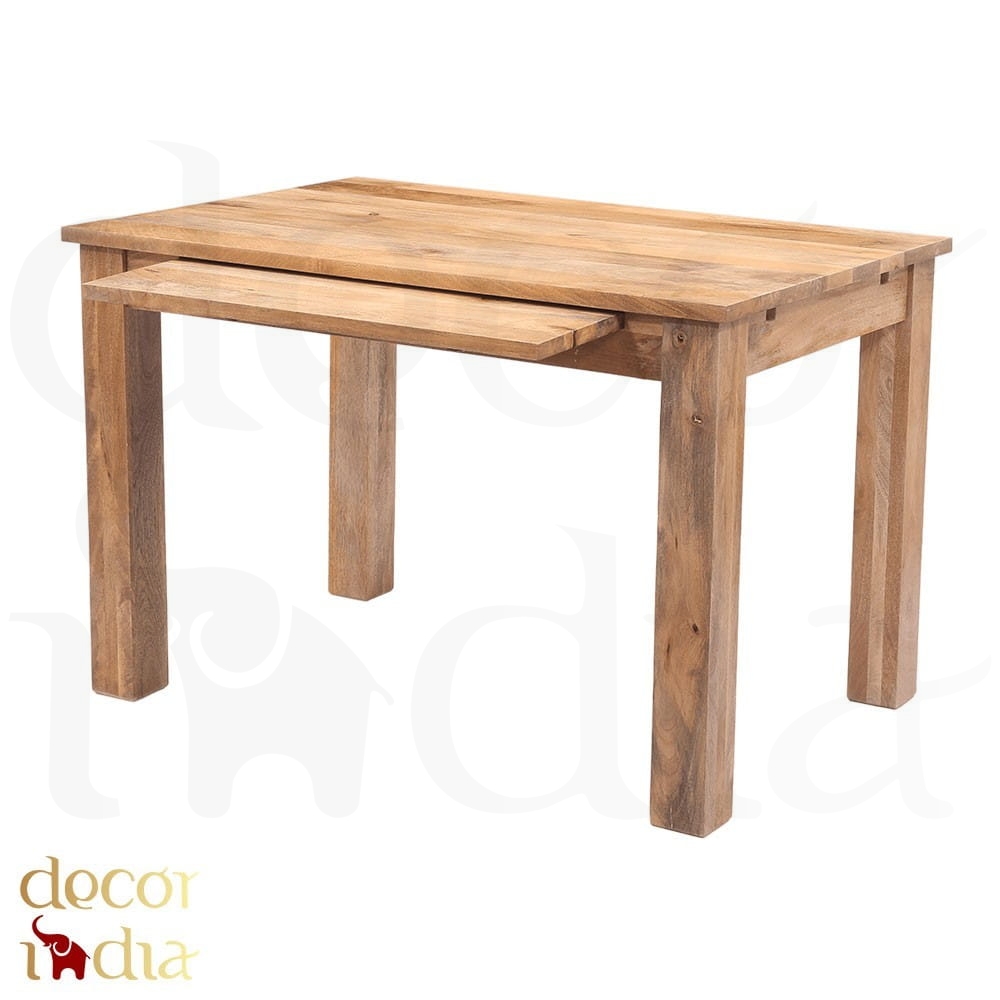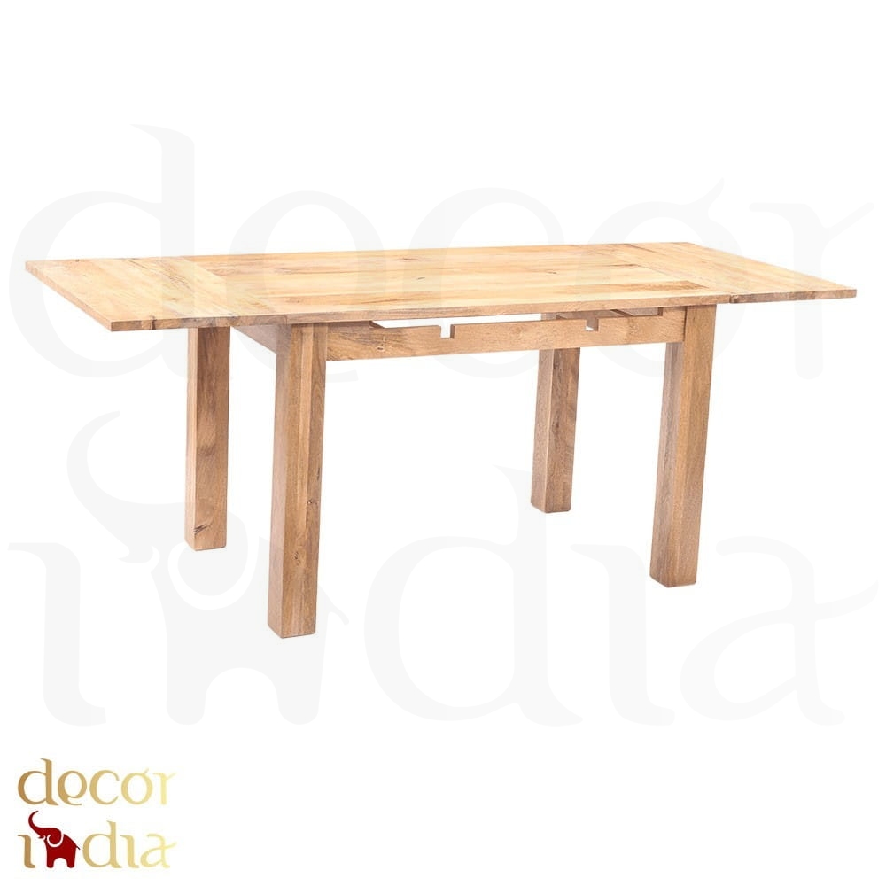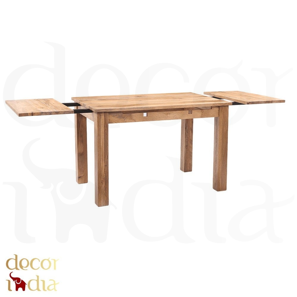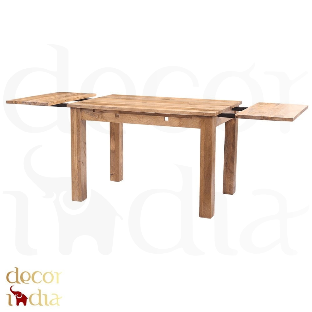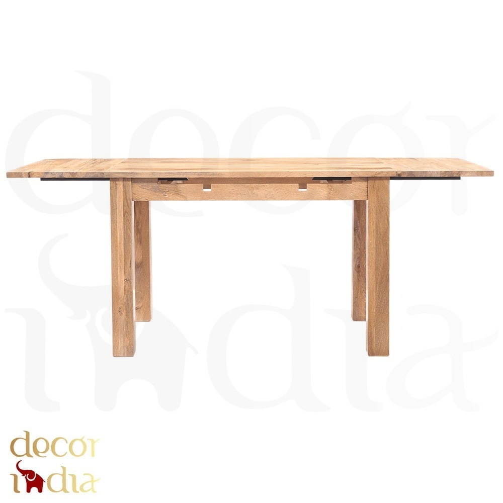 Stół do jadalni z kolekcji Mango. Wyjątkowy stół z kolekcji Mango, dzięki czemu na co dzień zaoszczędzają Państwo miejsce, a podczas wizyty gości przestrzeń zostaje powiększona. Stół jest wykonany z naturalnego drewna mangowca, dzięki czemu zachowuje swój piękny kolor. Stół polecamy do każdego wystroju wnętrza, szczególnie osobom, które cenią sobie naturalne piękno i jasne odcienie.