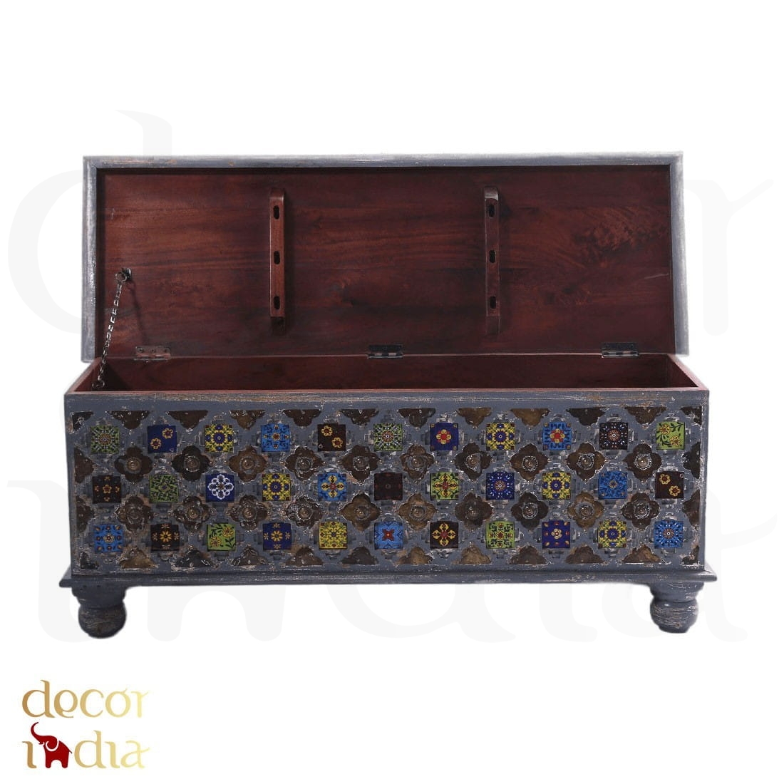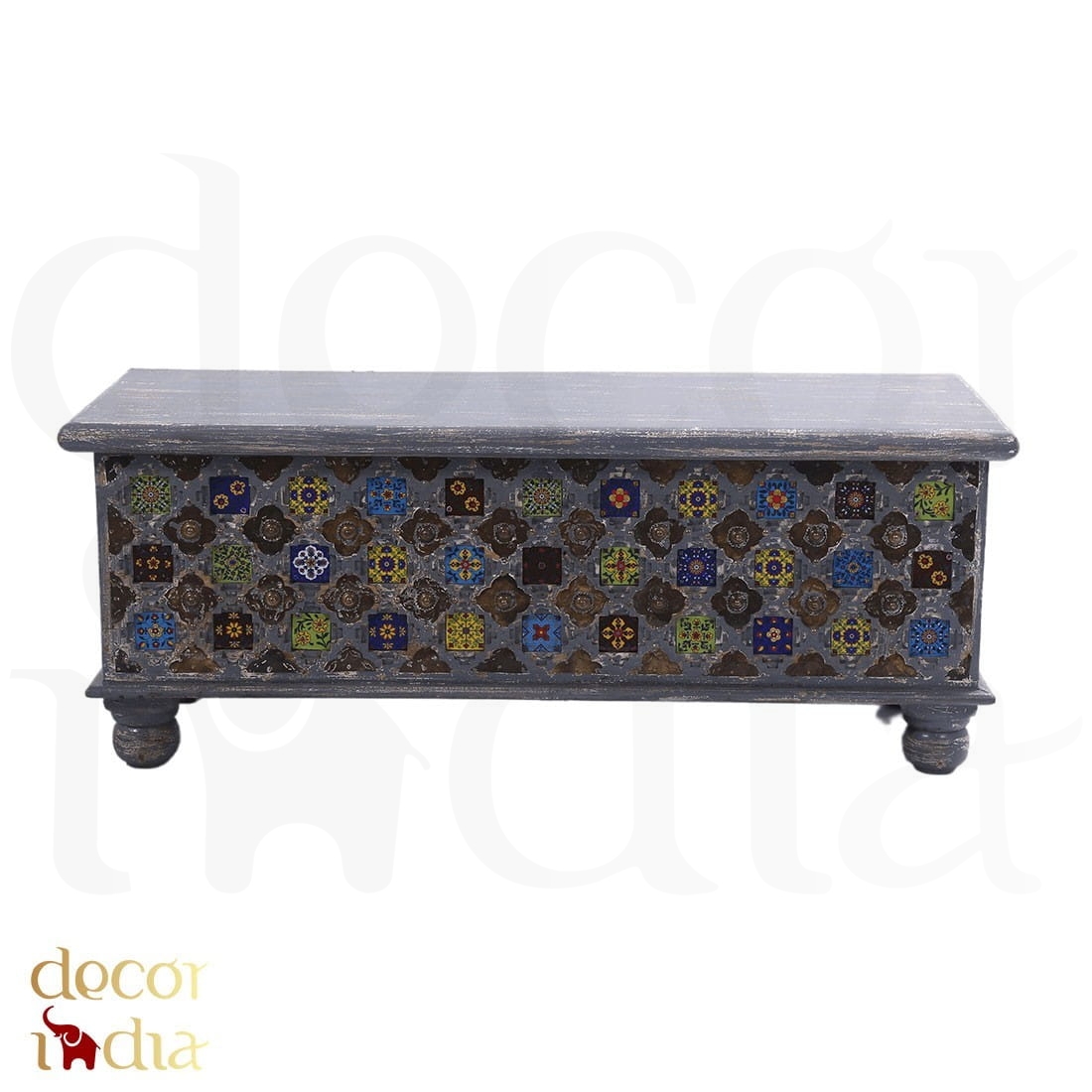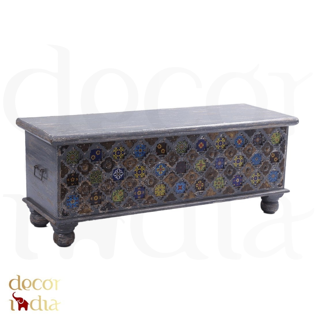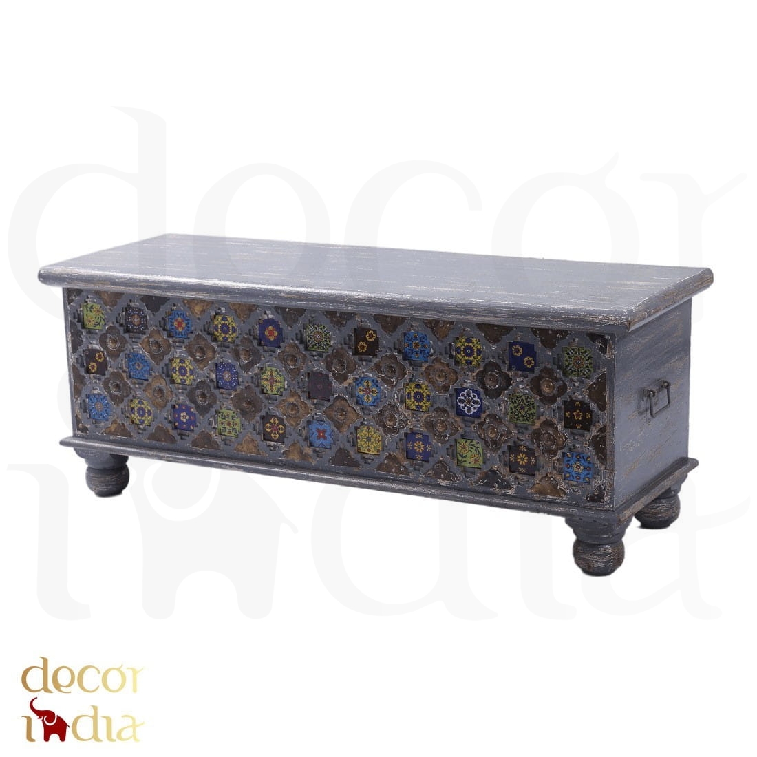 Drewniana skrzynia indyjska rzeźbiona postarzana